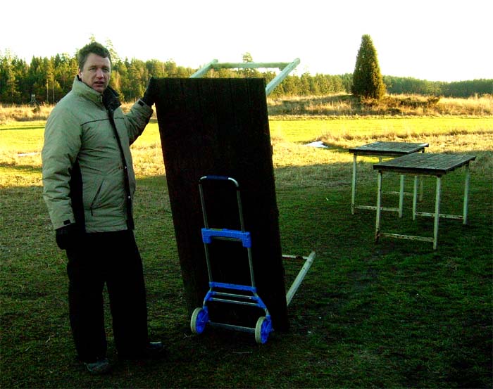 Vid skördetid ställer Christer upp sädescontainrar på åsryggen. Således får inga bilar ställas där.