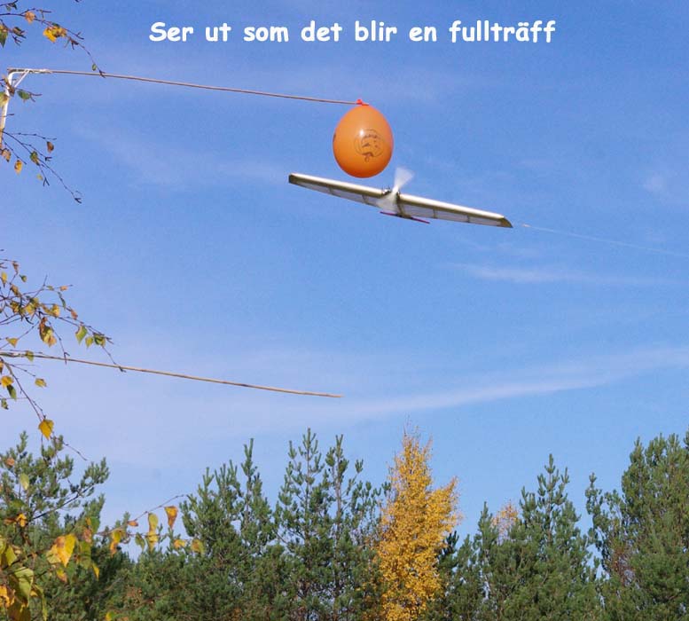 Man får bära sig åt hur som helst, men tjänar på att pricka med propellern. Träffar man med vingen hoppar ballongen oftast loss och så har man missat den poängchansen. I och för sig kan man sätta fast vassa föremål längs hela vingens framkant, men det anses osportsligt för det här är en gentlemannatävling. Tävling och tävling är kanske inte rätt beteckning utan mera ett trevligt sätt att knyta ihop flygåret. I och för sig har Red Baron ett arrangemang kvar, nämligen Hobbymässan i Frescati där man bjuder alla som vill att pröva på linstyrt.