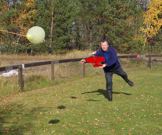 Ballongjakten kan verkligen rekommenderas. Speciellt när vädret är så fint om detta år. Man behöver inte kunna nånting annat än att flyga planflykt. Tar man sen också och skruvar ner kompressionen samt använder långa linor har man heller inga större problem med yrseln. Och kör man i backen är det bara att knacka igång igen och fortsätta. Man får ju som sagt ta hur långt tid på sig som helst.