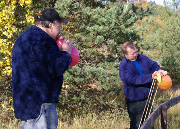 Som vanligt avslutar Red Baron i Älta sydost om Stockholm sin säsong med ballongjakt. Det tillgår så att tre ballonger sätts fast på varsin pinne i olika höjd och på så få varv som möjligt ska man göra slut på dem. Det blir minuspoäng för varje miss. Eller rättare sagt varje gång man passerar pinnen utan träff.