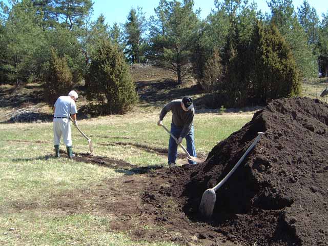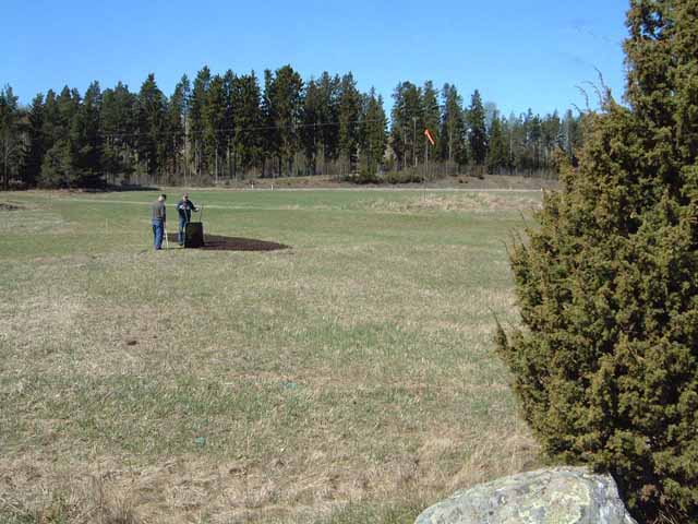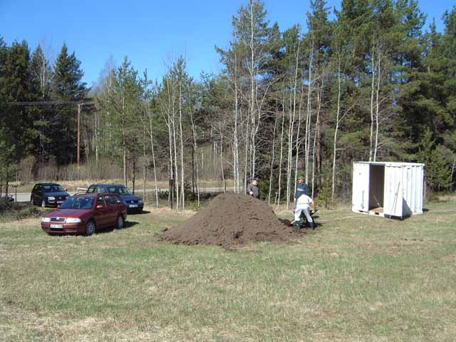 Söndagen den 11'e maj 2003 var det dags att åtgärda banan. Arbetade gjorde Kjell, Bosse, Danne och Hasse. Olle Gustavsson kom i kostym så han var inte mycket till hjälp. Här är några bilder.