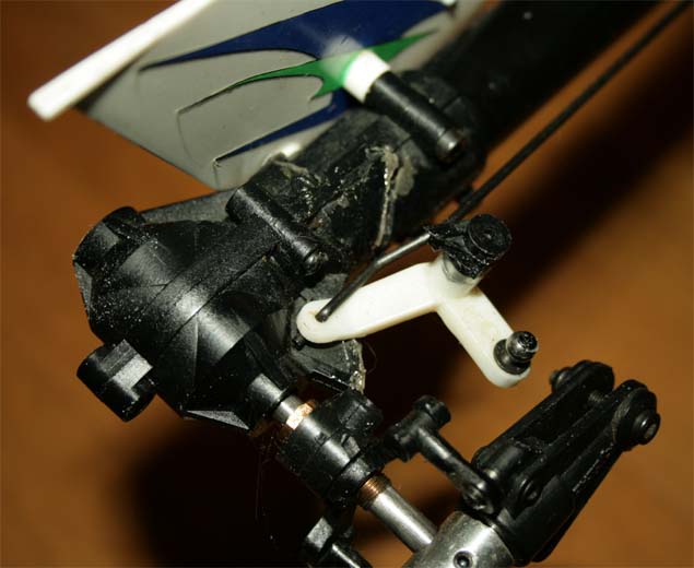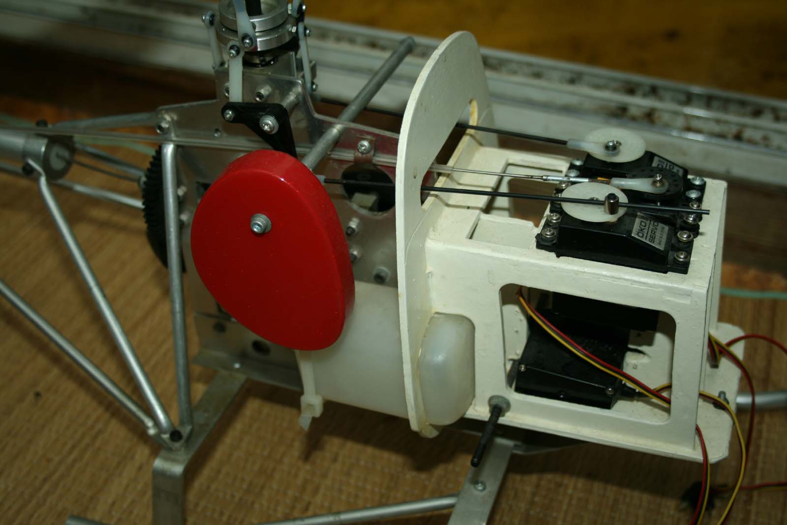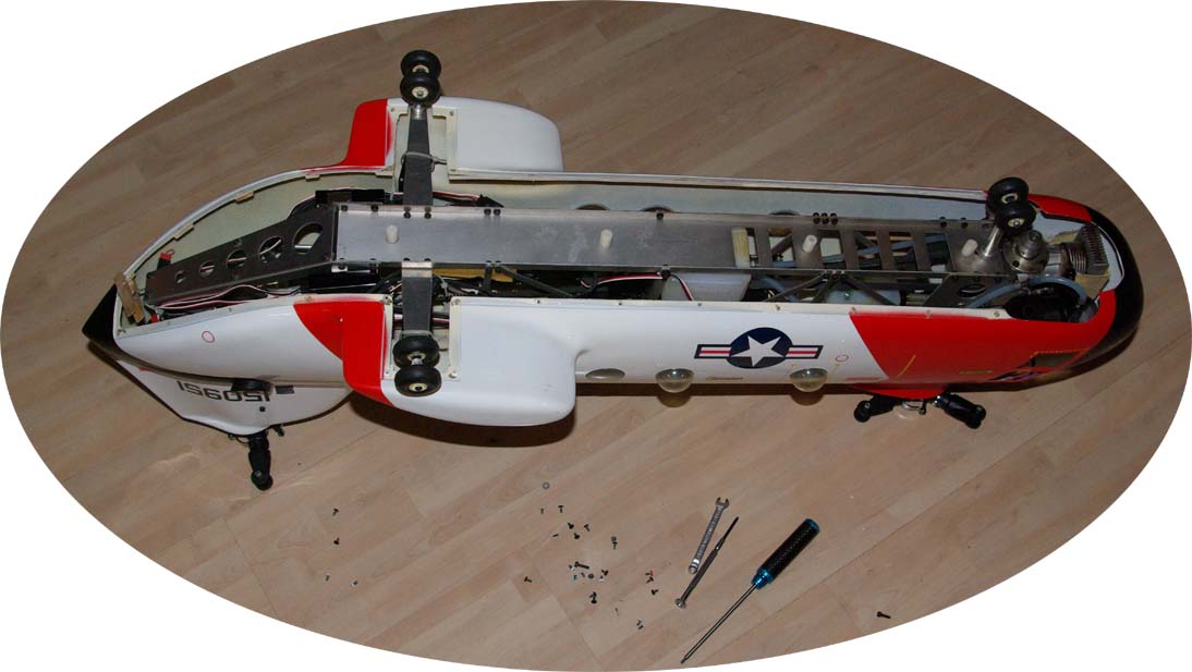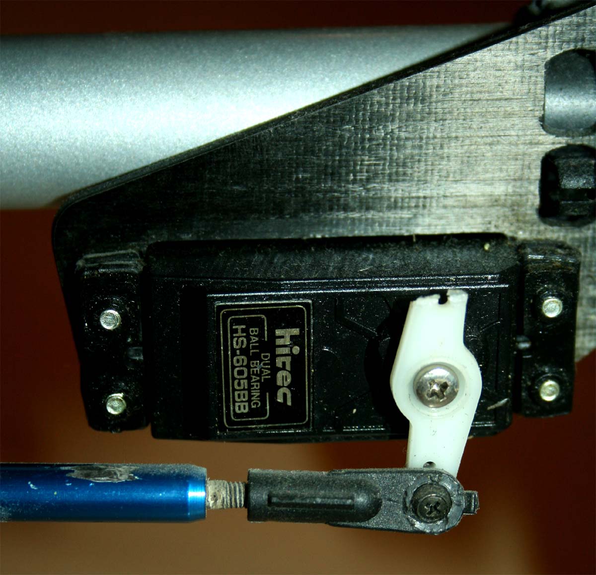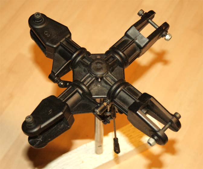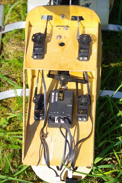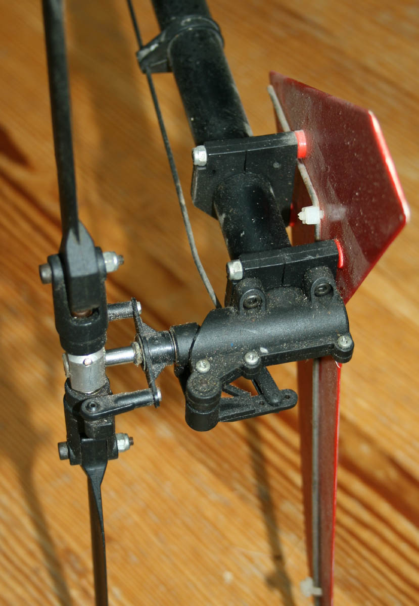För att kunna använda en vanlig 4-kanalsradio sitter skevservot (vars länkar går till var sin halva