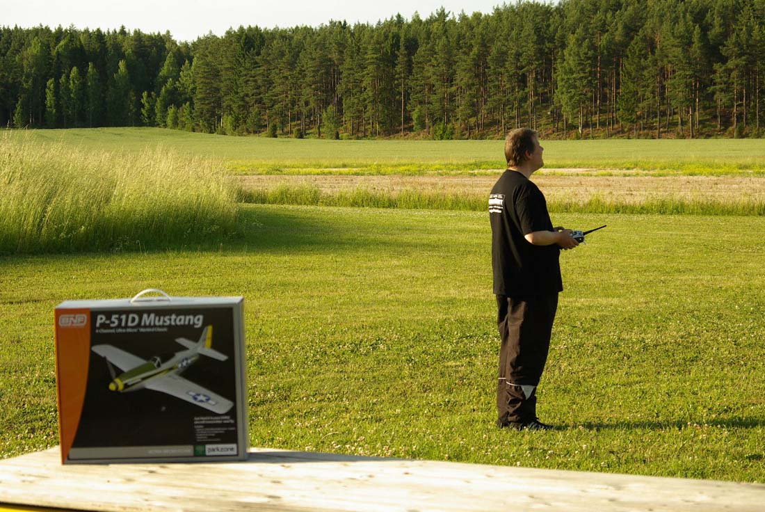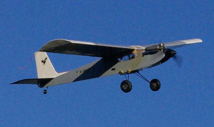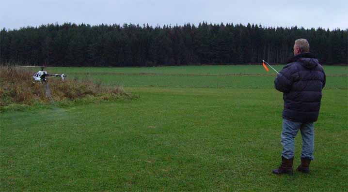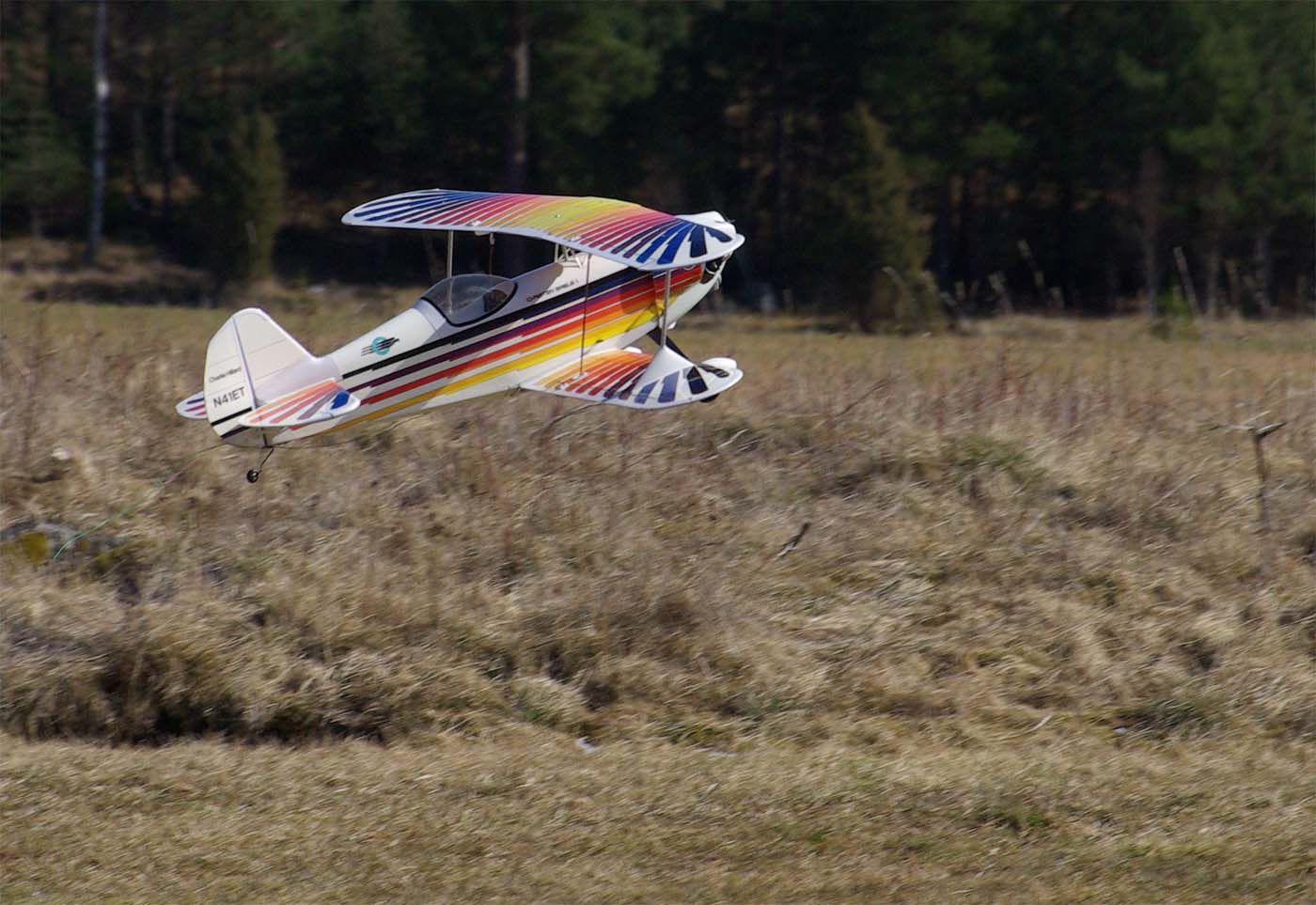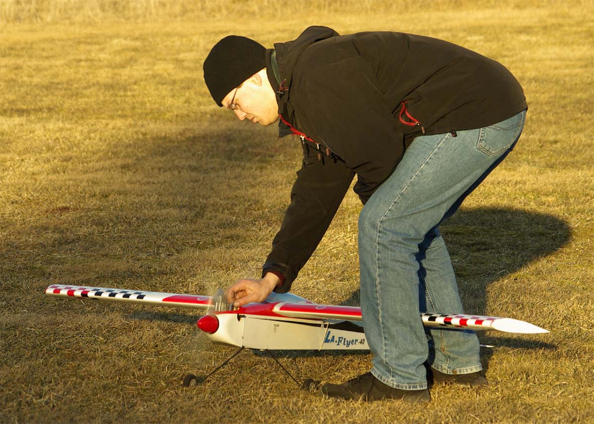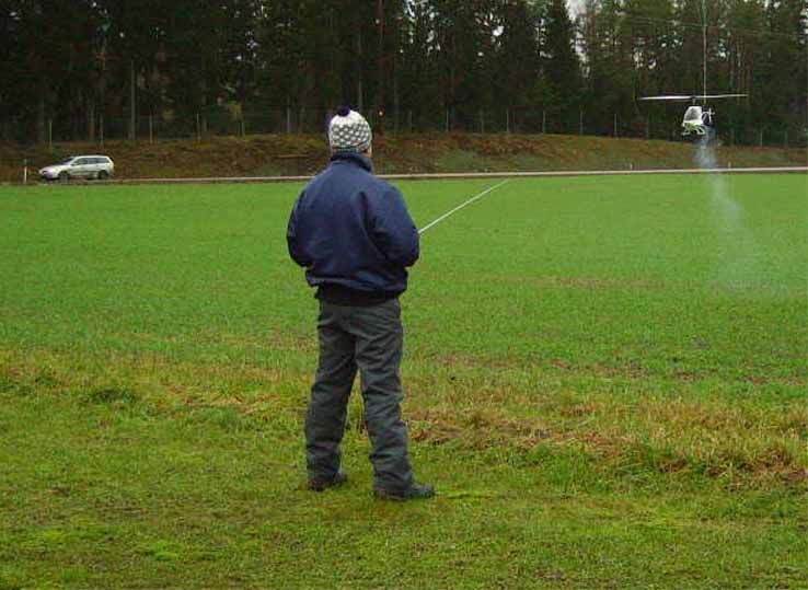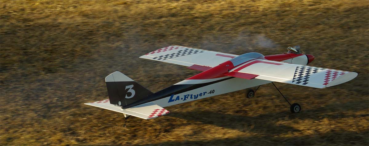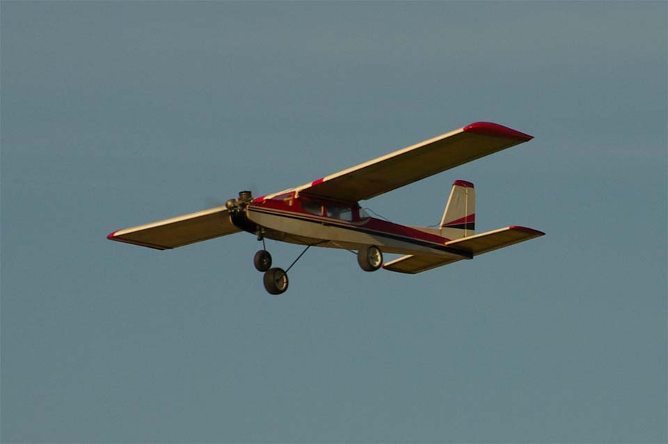 nervositeten att flyga en modell utan skevroder strök han förbi fältet på låg