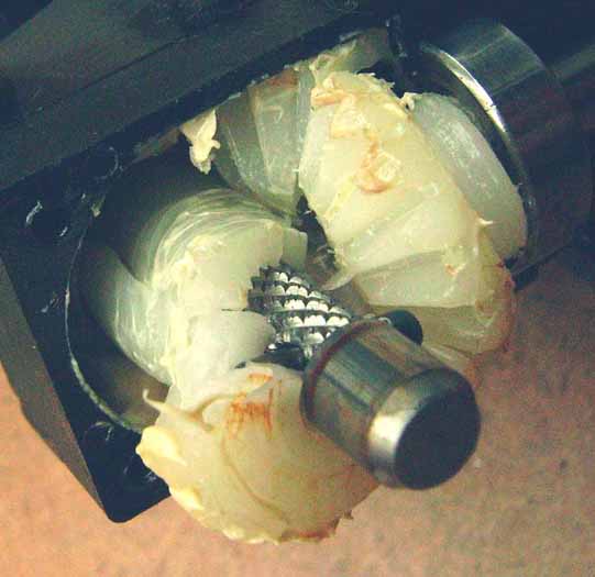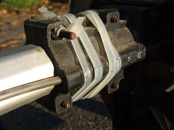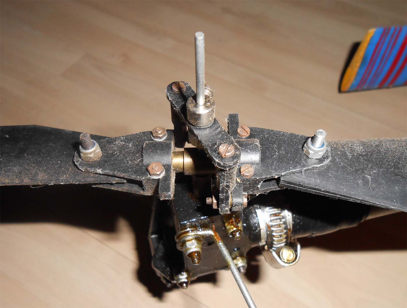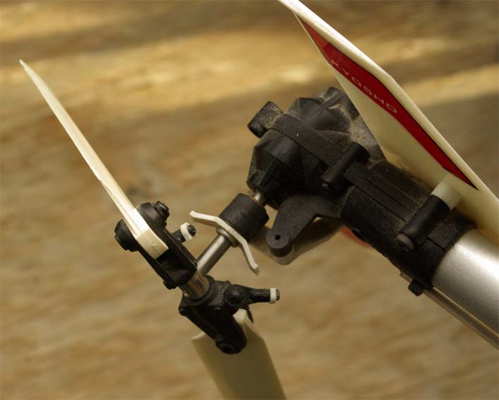 och att det sitter silikongummi som klämmer om roten på rotorbladen för att dämpa bladens