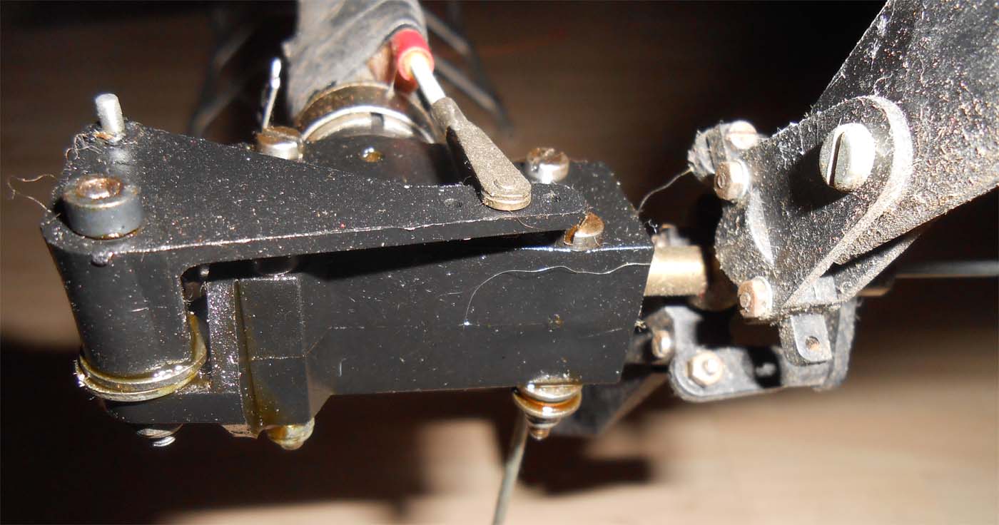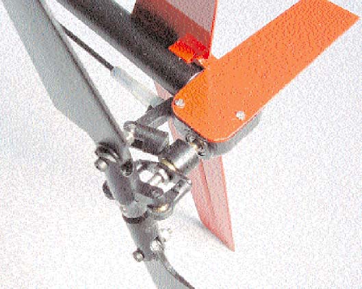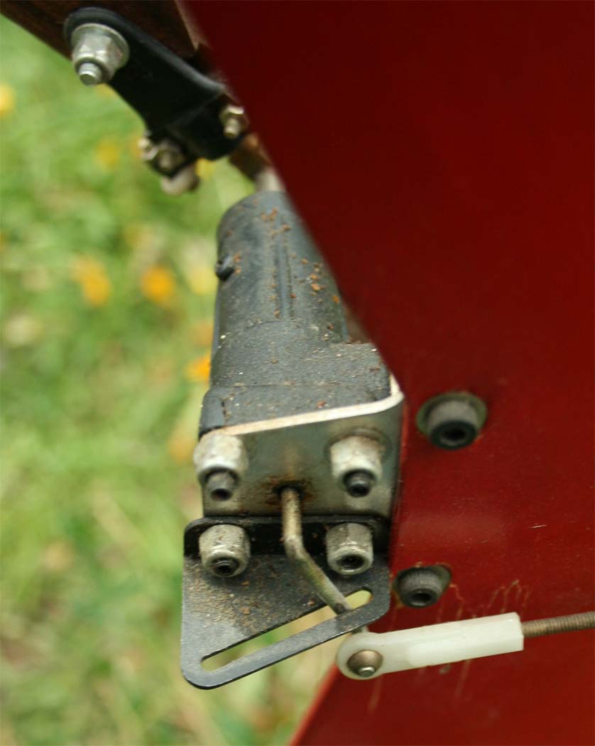 Skevservot knuffas sen fram och tillbaks längs skenorna av höjdroderservot.