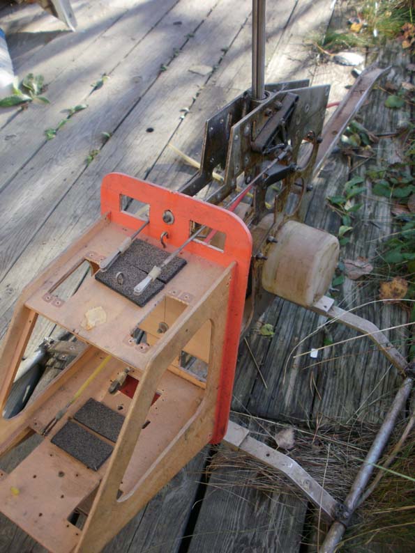 omvänd råttfälla. Vingen kläms fast av två hållare. När flygplanet rullat upp i fart