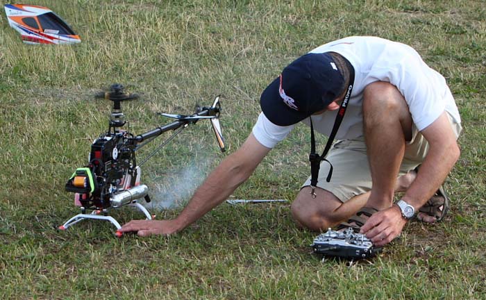 utan han tar bort skyddsplåtarna för att strålningsvärmen inte ska skada modellen medan man startar upp.
