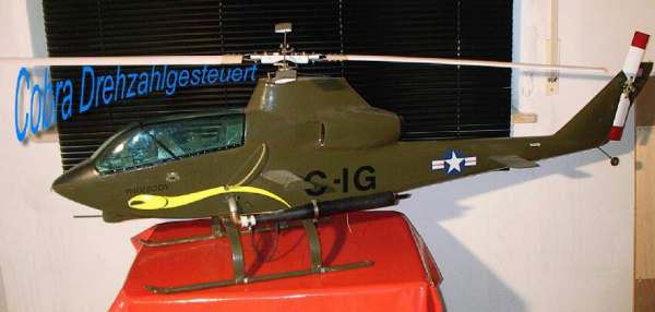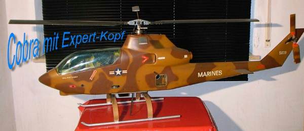 Inte nog med det, världen är full av överraskningar. På Hobbymässan 2004 hittar man Walter från Saltsjöbaden som har en otroligt fin samling av gamla Schlüterhelikoptrar som förstås också inkluderar en Cobra i utmärkt skick. Den är dock försedd med ett rotorhuvud från KKK Hughes 300'an för originalhuvudet med fast pitch var ingen höjdare enligt Walter som inte bara vill ha sina modeller stående som museiföremål utan gärna tar dem på en flygtur.