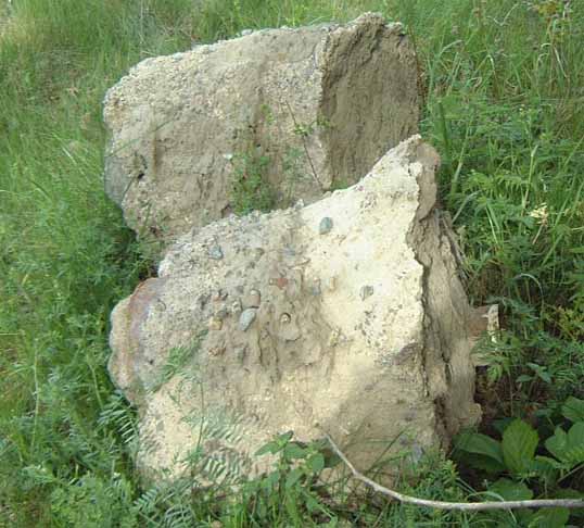 ligger de rejäla betongklumparna för grindstolparna. När arkeologerna börjar gräva här om några tusen år och hittar en avbruten propeller kommer de säkert undra vad det kan har varit för ena minifigurer som hade så små flygfarkoster? Eller kan den kanske suttit på någon sorts båt? Men gick verkligen vattenytan så högt på den tiden?