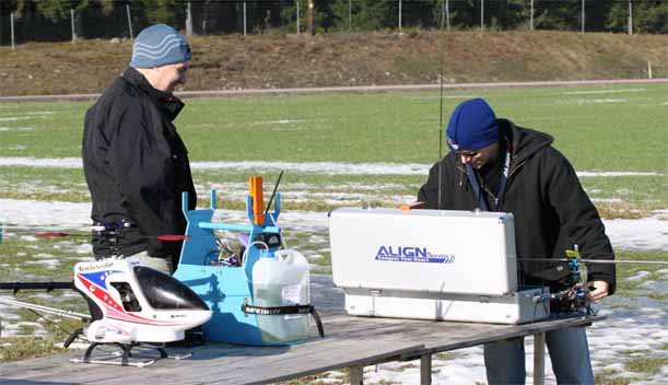 Strax innan första testflygningen dök Magnus och Andreas upp. Magnus, som har visat sig vara en lättlärd helipilot hade med sig sin Venture 50.
