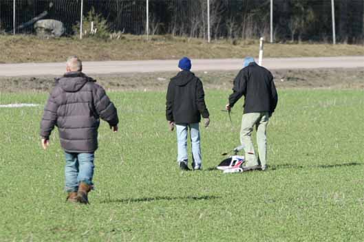 Som alltid med denna hobby så får man räkna med en del missöden. Idag var det Magnus Venture's tur att möta moder jord i alltför hög hastighet. Magnus och Andreas jobbade med inställningarna och i sin iver glömde de att kolla hur mycket soppa som var kvar i tanken. Helin fick alltså soppatorsk i luften. Andreas försökte autorotera ner den men det lyckades inte. Men helikoptrar är inte svårlagade för det gör man med plånboken för att citera webmastern själv.