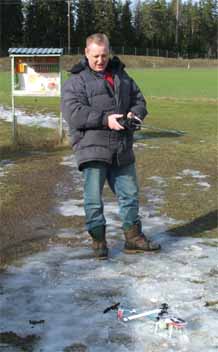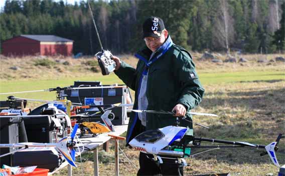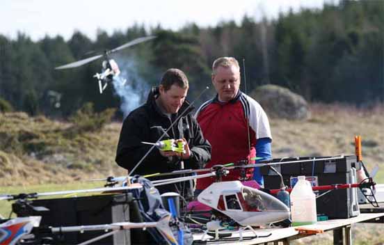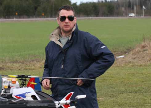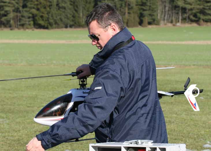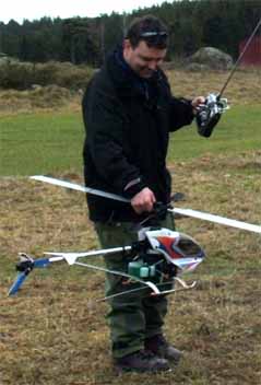 Danne köpte ju Petris Concept 60 och hade satt på längre blad. Våldsamma vibrationer. En liten lätt koll visade att ena bladet höll 7° medan det andra var 14°. Det blev ett antal varv att justera för att få till trackingen. Sen visade det sig att han fick justera bladen fram och tillbaks mellan varje flygförsök. Stefan begrep ingenting. Till slut sattes det på glasfiberblad. Mera vibrationer. Ena bladet fick justeras tillbaks till urspungsläget. Petri var i alla fall nöjd med att få känna på sin gamla kära klenod igen varvid han på stående fot erbjöd sig att köpa tillbaks den för samma pris. Dock utan låtsas kännas vid att den nu var försedd med all elektronik som han hade strippat den på den räven.