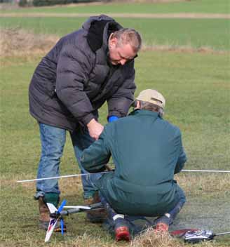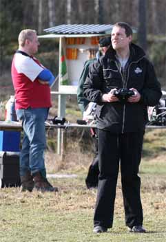 Eftersom det är dåligt med plankflygare nu för tiden kom det assistans från Enköping. Jocke hade med sig sin kompis Uffe som först flög en gul Mini Funtana och sen plockade fram en rejäl Musse. Tyvärr fick vi inte se den i luften. Motorn hade lossat av någon anledning och satt inte fast ordentligt.