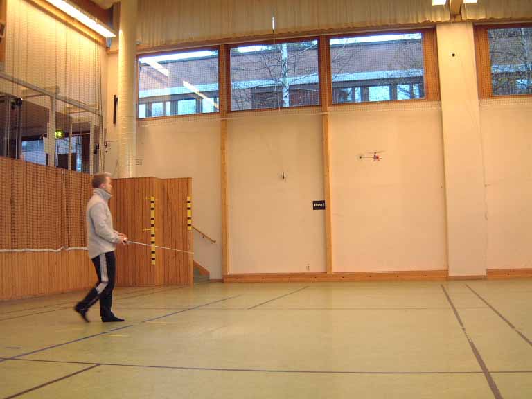 Christer drog vidare och flög sin Micro Copter inomhus