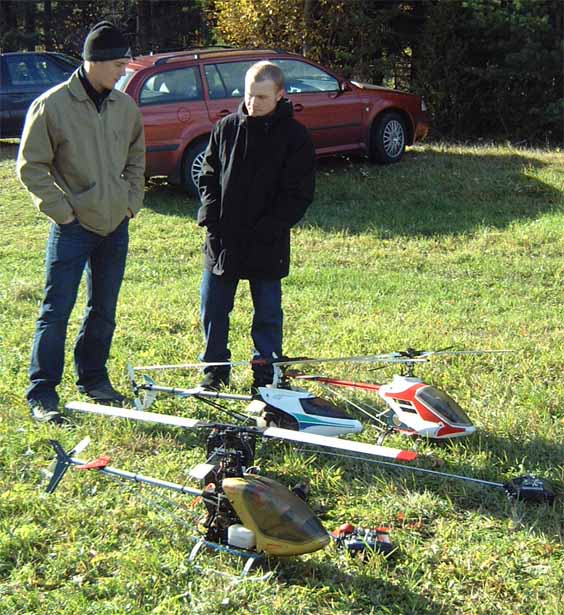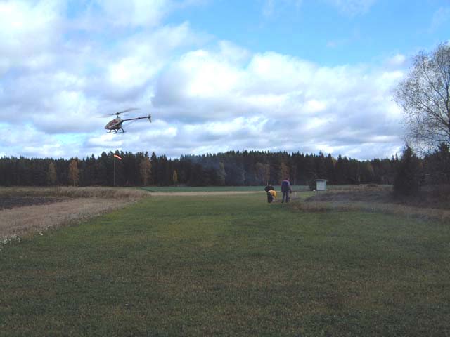 Christer har sluppit ut från lumpen och fått igång sin helikopter.