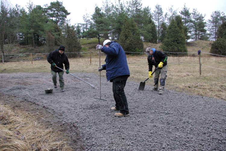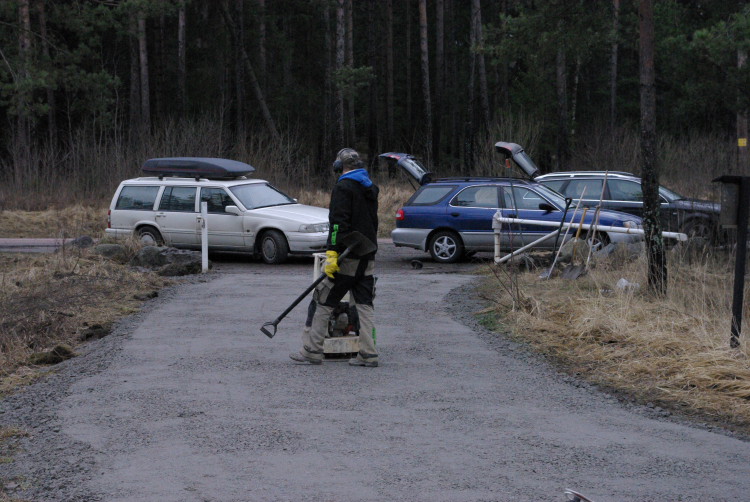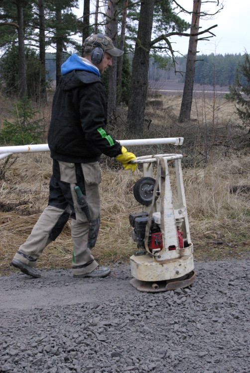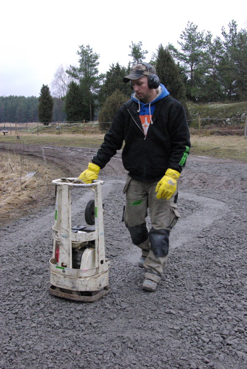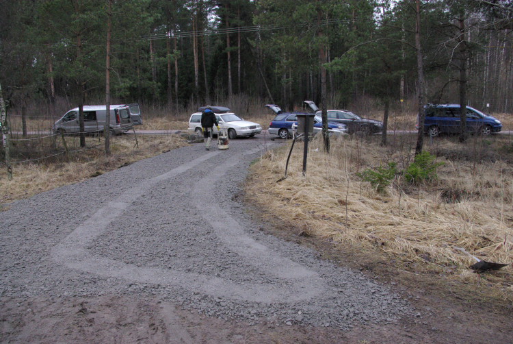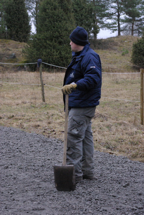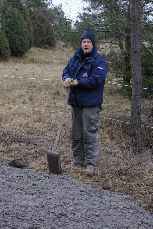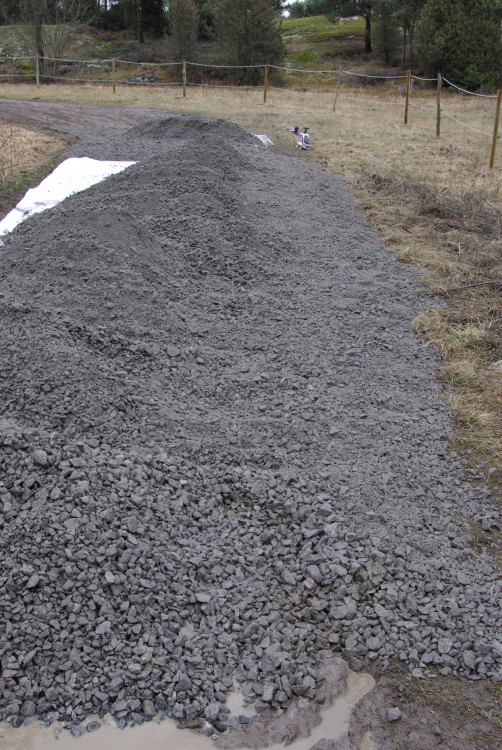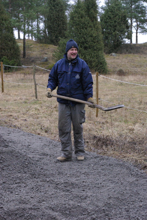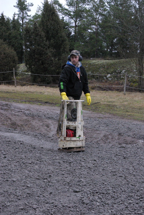 Vårt problembarn parkeringen som inte går att använda när det är blött fick en ansiktslyftning i mars 2008 då vår markvärd Krister lagt ut markduk och ett lass gruskross som vi hade att sprida ut. Eftersom det inte finns så mycket att kommentera lägger vi ut bilderna som togs rakt upp ner.