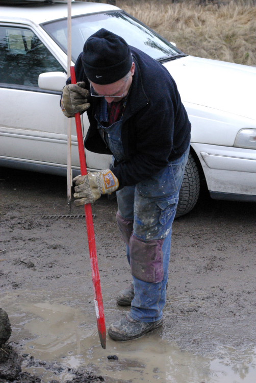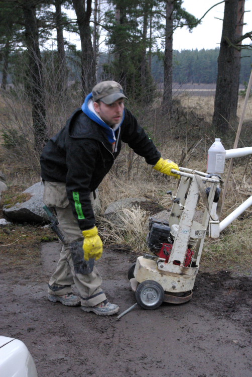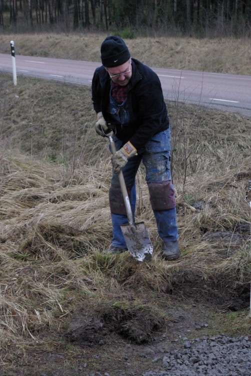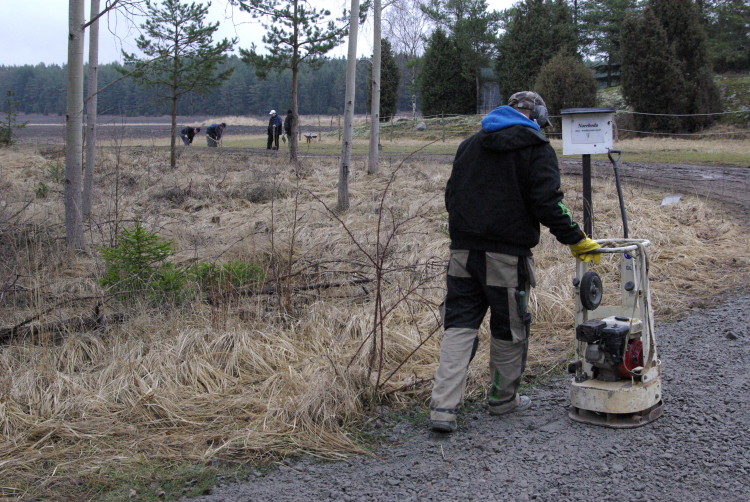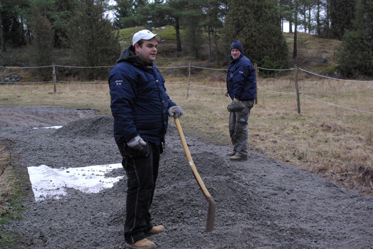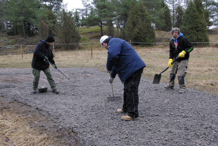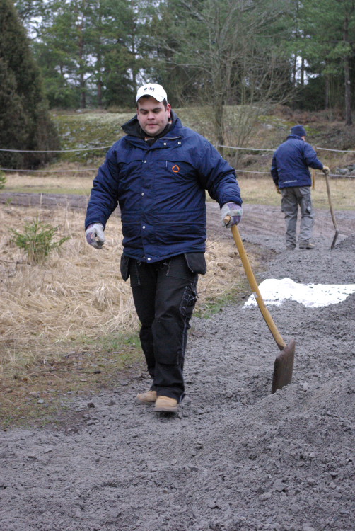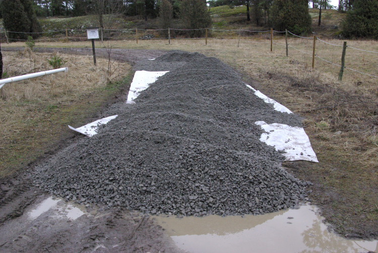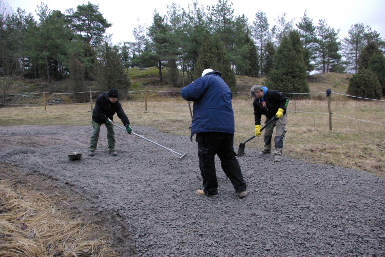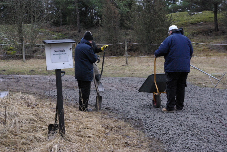 Vårt problembarn parkeringen som inte går att använda när det är blött fick en ansiktslyftning i mars 2008 då vår markvärd Krister lagt ut markduk och ett lass gruskross som vi hade att sprida ut. Eftersom det inte finns så mycket att kommentera lägger vi ut bilderna som togs rakt upp ner.