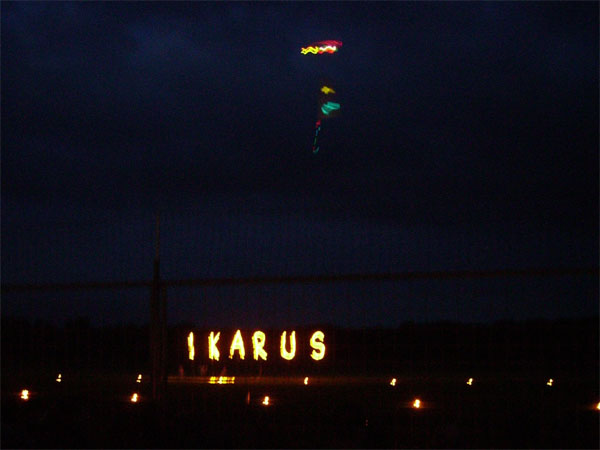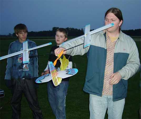 Så småningom ebbade det ut och vi tog oss in till byn för att stärka oss inför nattflygningarna som skulle starta kl. 22. Nu tog det sin rundliga tid innan det kom igång men det gjorde inget. Det fanns ju annat att ägna sig åt. Bara bra att det hann bli mörkare. Det är ljusa kvällar början av juni även i Tyskland. Förstås började det hela med en helikopter som gjorde lika avancerade konster som om det varit ljust. Obegripligt att piloten vet var han har modellen enbart med hjälp av lysdioder. Sen flögs det hej vilt, med ballongprickning och jag vet inte allt vad de hittade på. Fuchsjakt förstås, där ett plan har en serpentin som i combat, fast försedd med lysande prickar. Alla andra ska försöka klippa serpentinen och det lyckades till slut. Ingen modell gick åt märkligt nog. Fyrverkerier sköts av från modellerna och mest förunderligt var att den som flög helikopter såg attityden på sin modell fast helikopterns lysdioder försvann i det intensiva ljuset från fyrverkerierna. Flygplan kan man ju tappa bort en stund utan katastrof, men det är värre med helikopter.