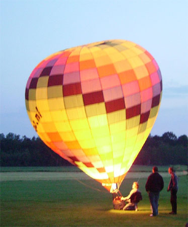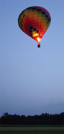 Efter kvällsmaten tog vi oss ånyo en sväng till fältet i hopp om att se lite kvällsflyg. Alla möjliga elkärror flög hit och dit. Mest intressant var en hembyggd autogiro som både loopade och buntade utan problem. Ett annat udda inslag var en varmluftballong. Stor nog att bära ett litet barn. Eller i alla fall en mindre hund. Katter har