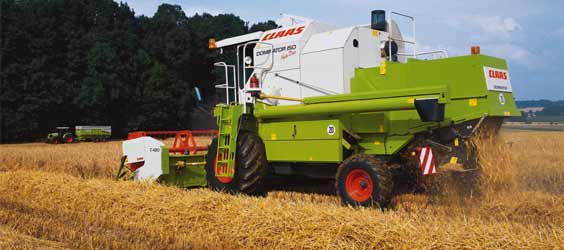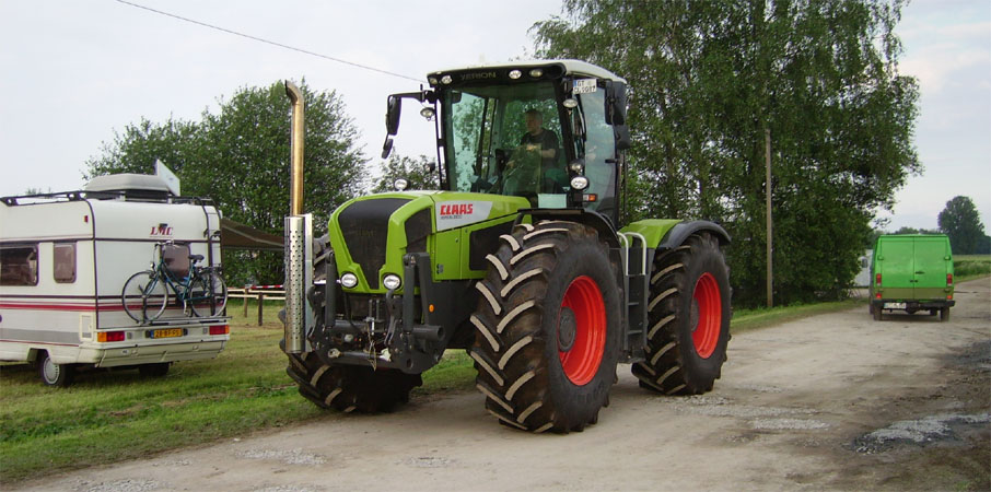 Stora var också traktorerna de använde. Inte så konstigt kanske. På vägen till fältet passerar man Claas som tillverkar diverse jordbruksmaskiner. Bland annat en sån här tröska som stod uppställd på torget mitt i byn. Bilden ger ett intryck av att den är normalstor, men kolla