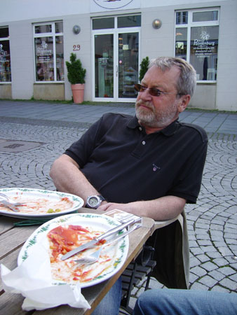 Vårt hotell hette "Hotel Dom" och vad det innebar visade sig på söndagsmorron. Mitt över gatan låg St. Lucia Kirche, dvs. den katolska domen. En rejäl pjäs. Klart överdimensionerad för att ligga i en så liten ort. Och den hade resurser därefter. Strax efter 9 satte kyrkklockorna igång att dåna. Normalt ringer kyrkklockor, men det gjorde inte dessa och vårt hotel befann sig i princip mitt under domens stora torn. Oväsendet (får man säga så utan att häda?) höll på i en kvart minst och det hjälpte inte det minsta att stänga fönstret. Det skakade i hela hotellet. Bara att finna sig och stiga upp. Det gick inte att sova vidare. Till och med sängen skallrade. Nåväl, vi skulle ju ändå upp, fast det var en lite väl brutal väckning. Och vi som inte ens tänkt bevista mässan.