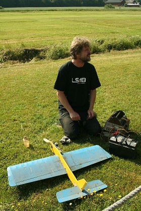 Lars Eling hade en linkärra av okänt fabrikat som han fått av Hasse. Motorn ville till en början inte alls vara med, men till slut fick Lars igång den och kunde göra ett antal ringrostiga loopingar. Modellen är troligen en Flite Streak från Top Flite som var leverantör av mängder av byggsatser från typ Hedenhös och företaget är märkligt nog fortfarande aktivt. Förväxla dem inte med tillverkaren av golfbollar med samma namn. Flite Streak går faktiskt att köpa än idag, men nu som ARF där vingen levereras klädd och kroppen bara att trä på och limmas fast. Dit med stabbe, fena och landställ. Sen är modellen i stort sett färdig förutom bränsletank och motor som inte behöver något trottelförgasare, utan det är i princip bara ett venturihål rakt in. Sen skruvar man på bränslenålen och/eller kompressionsskruven om det är en diesel, för att få motorn att gå som man önskar. Ingen elektronik behövs. Kom bara ihåg att hålla linorna rena så de inte klibbar ihop för då blir det svårt att kontrollera modellen. Förutom det är det inga konstigheter annat än att man kan bli yr i bollen om det är mycket bränsle tankat så modellen flyger länge, för det går inte att stänga av när man väl lättat från backen.
