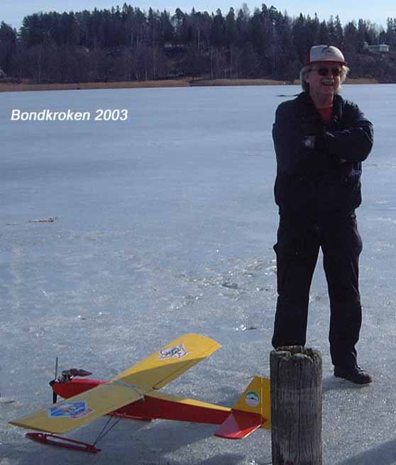 Olle Gustafsson tog sig ner på isen vid vinterflygträffen 2006 trots sina onda ben
