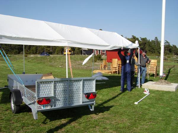 Vis av erfarenheten från Granlandaträffen året innan förankrades tältet väl. Vi ställde en släpvagn inne i