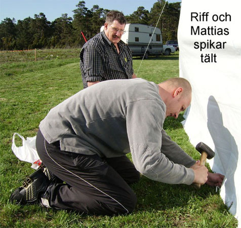 Väl på plats så tidigt var det bara att hugga i och hjälpa Mattias, Anders och Riff med att resa partytältet vilket inte var det