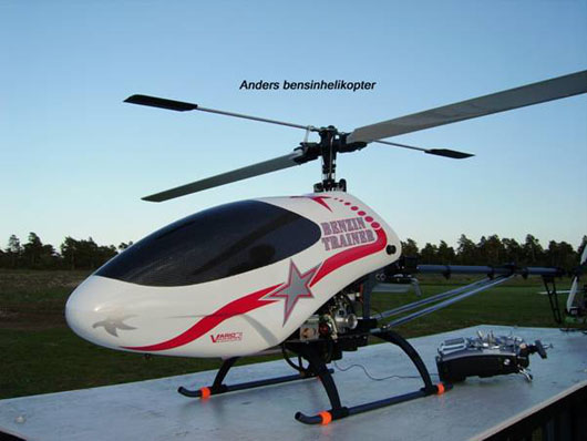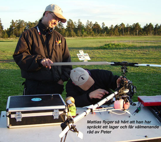 Anders lånade ut sin bensinhelikopter till Peter och mellan uppvisningsflygningarna fick Anders inför intresserade åskådare