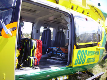 (inte sjukhuset). Solna och Huddinge har numera samma huvudman. Helikoptern var försedd med uppblåsbara flytkuddar.