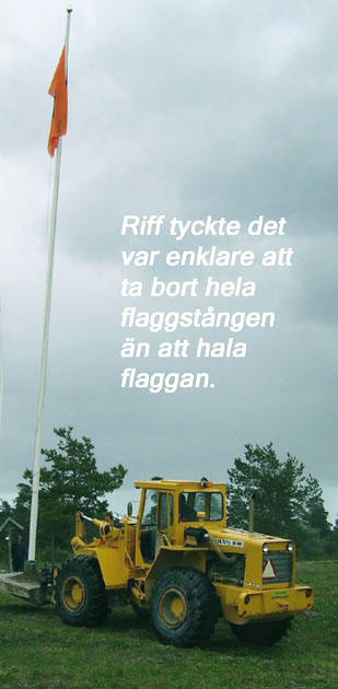 Allt gick bra och inför natten säkrades tältet med diverse tunga tillbehör från Riffs hjullastare inklusive hjullastaren själv.