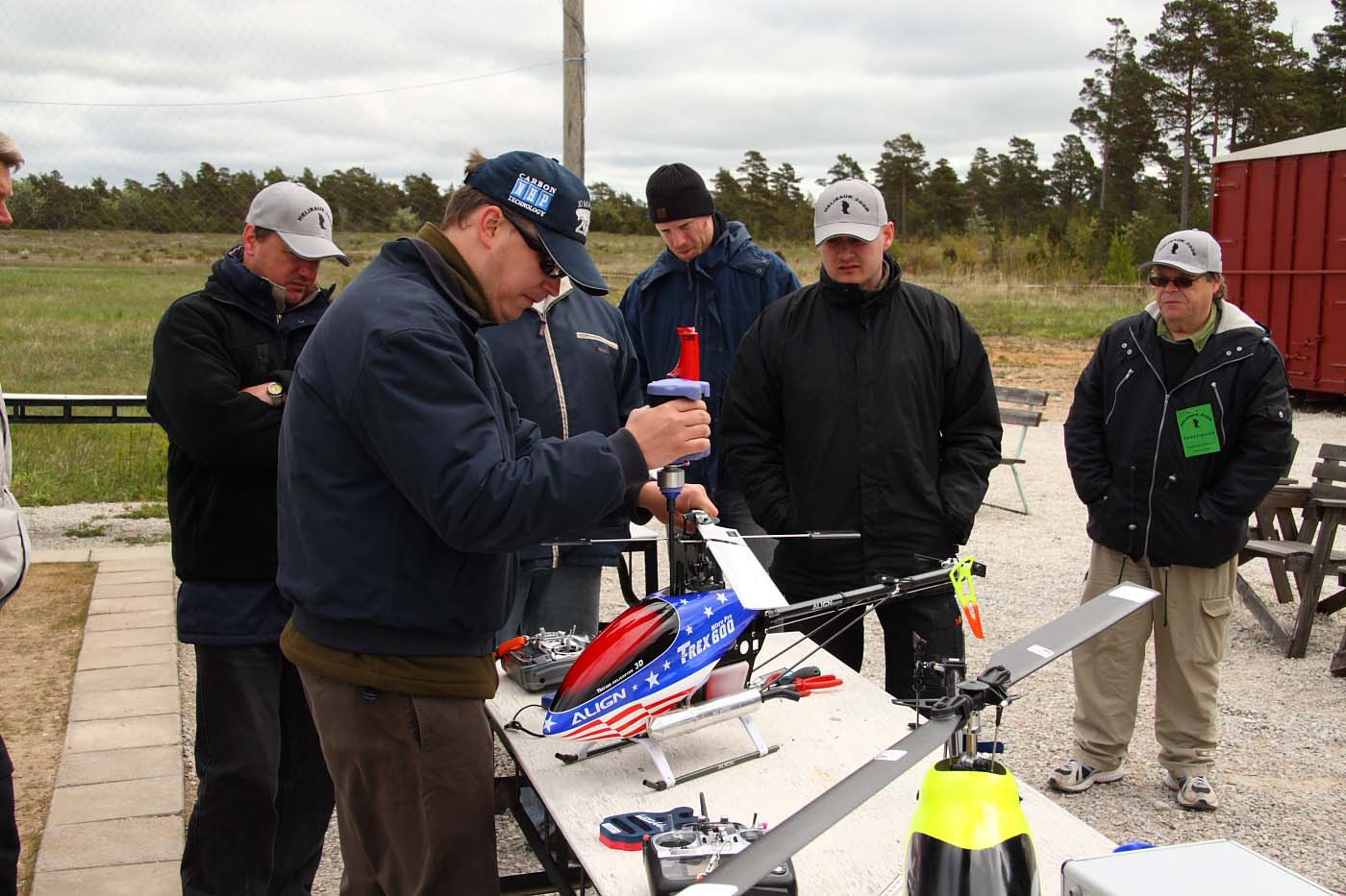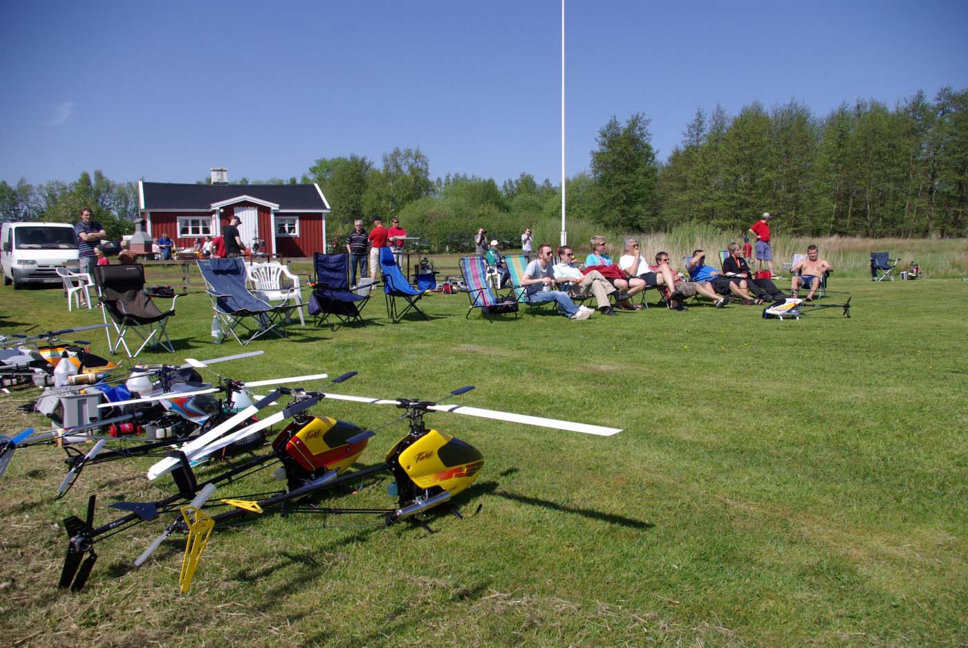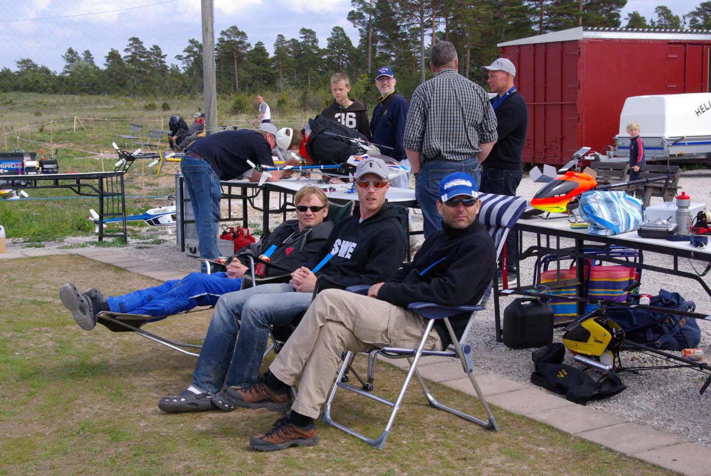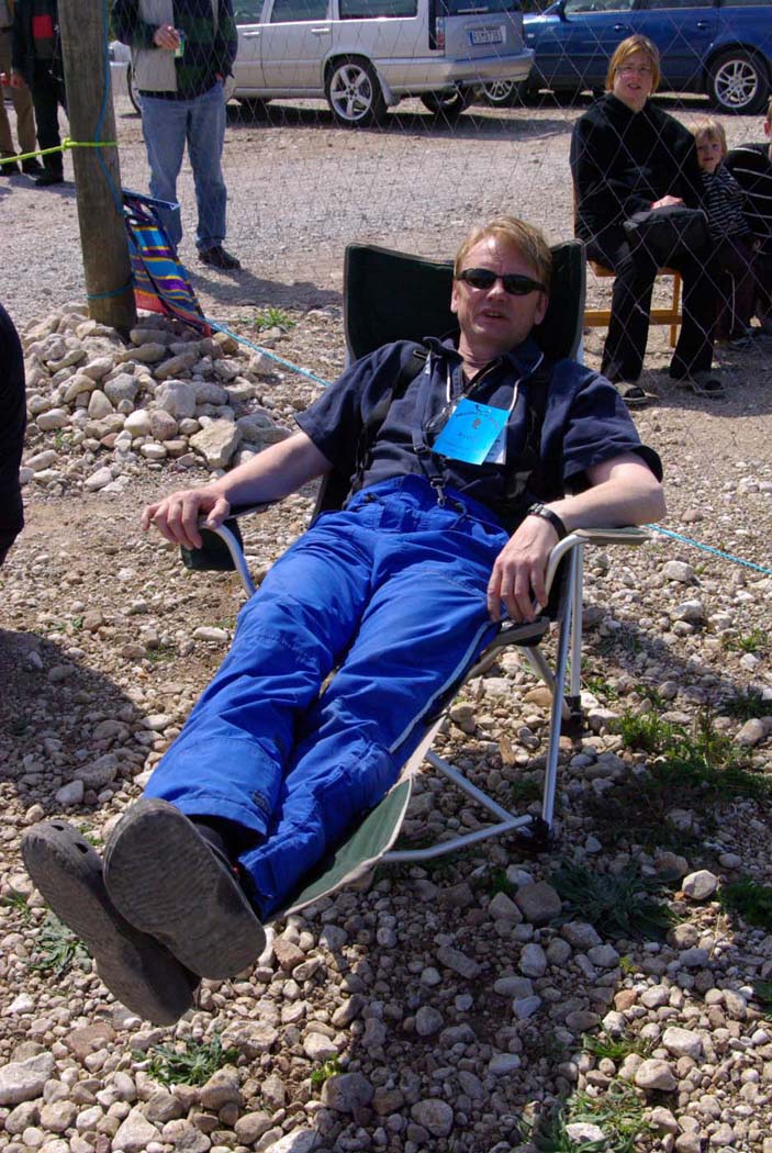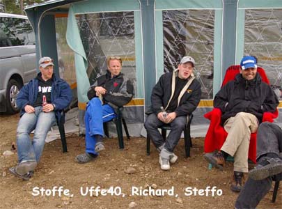 Nu blev det inledningsvis för oss som anlände ett par dagar innan träffen varken sol eller blåst utan enbart rent bedrövligt kallt för att vara i maj. Vinterjacka var definitivt att rekommendera och den nya stora klubbstugan kom väl till pass. Eller sätta sig bakom nånting som gav lä och som dessutom gav visst skydd från kollegorna som testade sina konster.