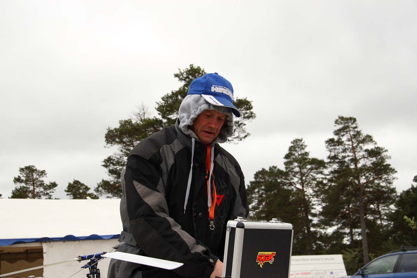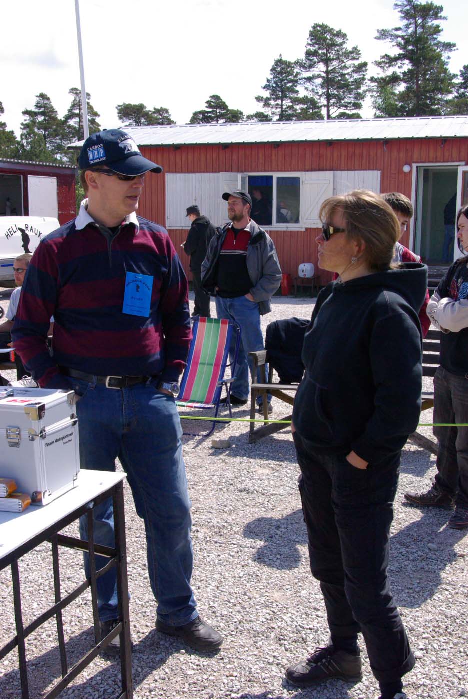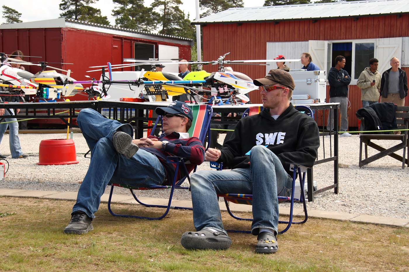 Nu blev det inledningsvis för oss som anlände ett par dagar innan träffen varken sol eller blåst utan enbart rent bedrövligt kallt för att vara i maj. Vinterjacka var definitivt att rekommendera och den nya stora klubbstugan kom väl till pass. Eller sätta sig bakom nånting som gav lä och som dessutom gav visst skydd från kollegorna som testade sina konster.
