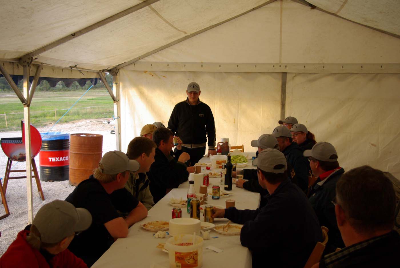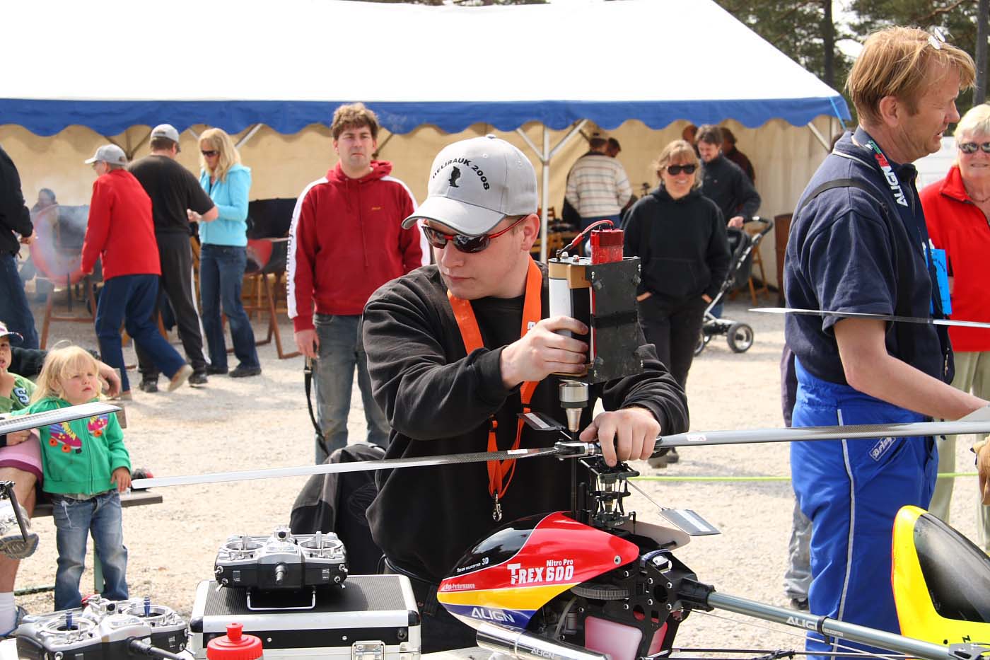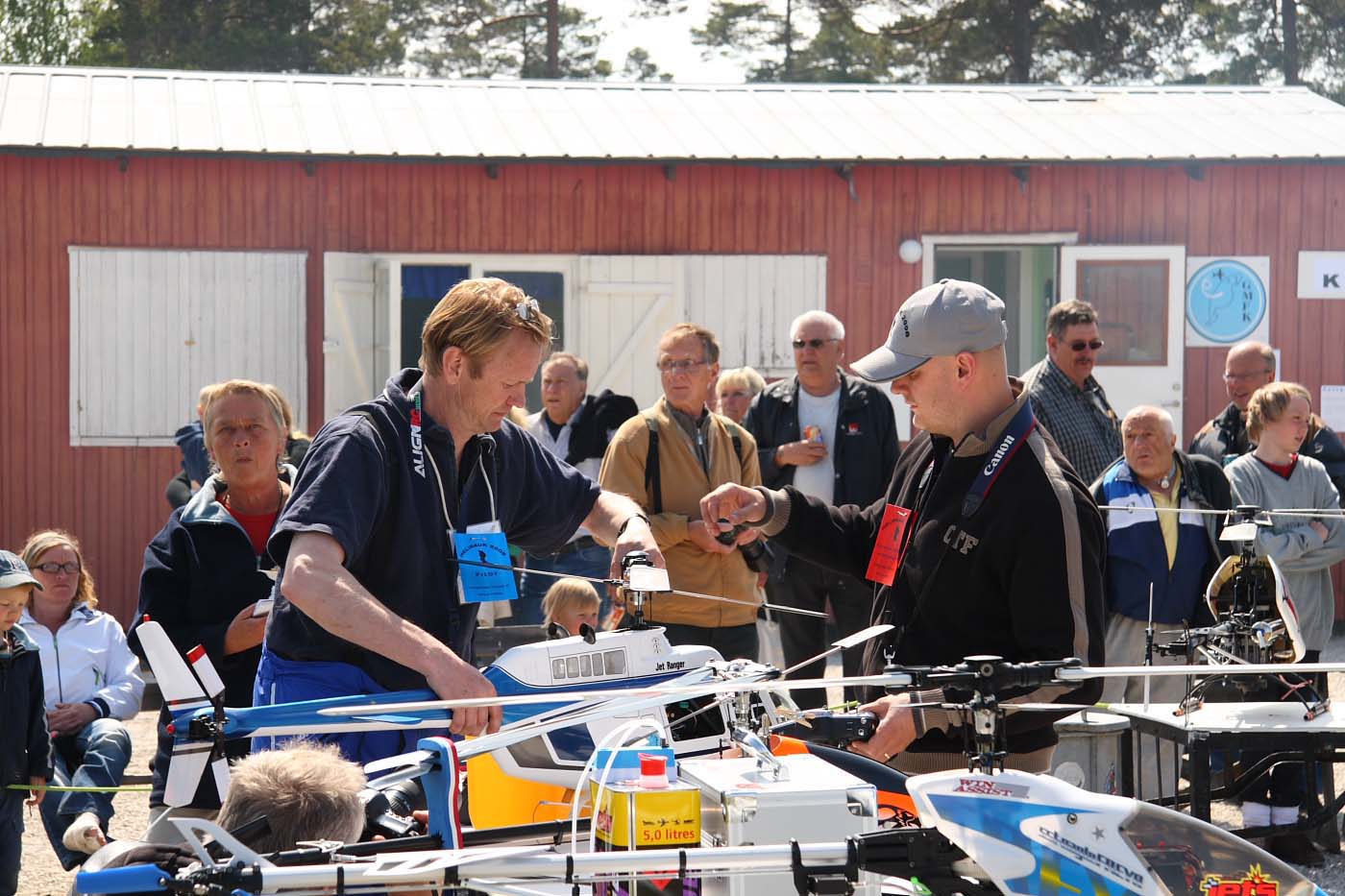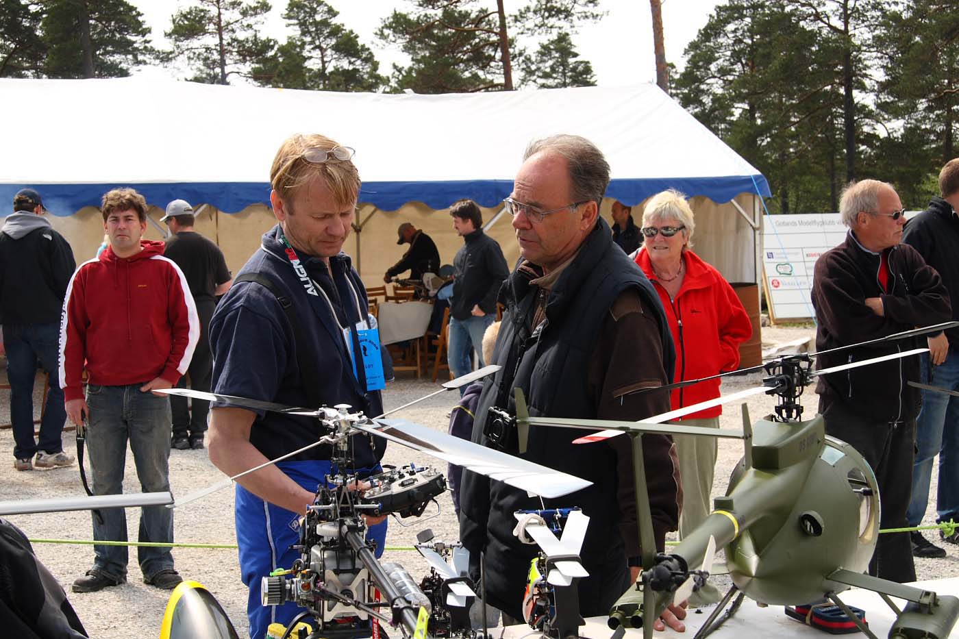 Nu blev det inledningsvis för oss som anlände ett par dagar innan träffen varken sol eller blåst utan enbart rent bedrövligt kallt för att vara i maj. Vinterjacka var definitivt att rekommendera och den nya stora klubbstugan kom väl till pass. Eller sätta sig bakom nånting som gav lä och som dessutom gav visst skydd från kollegorna som testade sina konster.