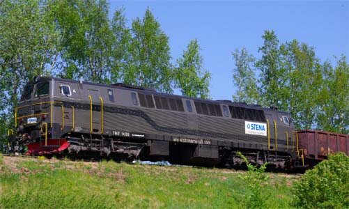 för tidigare hade jag tagit en morgonpromenad längs banvallen och noterat att där gick nog ingen tyngre trafik för rälspikarna satt inte precis fast i syllarna. Eller kanske rättare sagt det som var kvar av syllarna. Om man tryckte till rälen rörde den sig. Men det hindrade tydligen inte Stena att använda sträckan för
