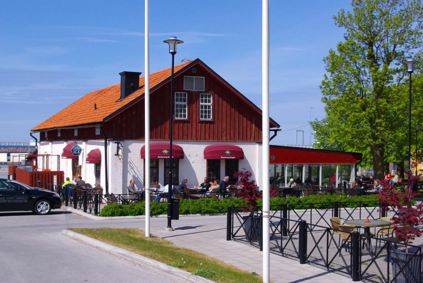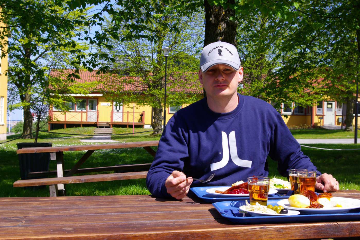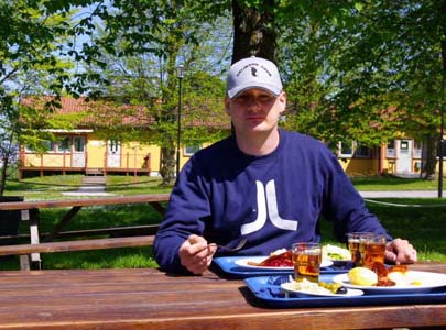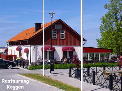 Nåväl, man får ta seden dit man kommer. Men under förmiddagen dök Mattias Appelquist upp och bjöd på lunch på Restaurang Koggen med utsikt över hamnen och då kunde jag ju inte gärna muttra längre och så var allting åter frid och fröjd. Och Gotland visade sig från sin allra trevligaste sida och solen gassade. Kunde inte varit bättre.