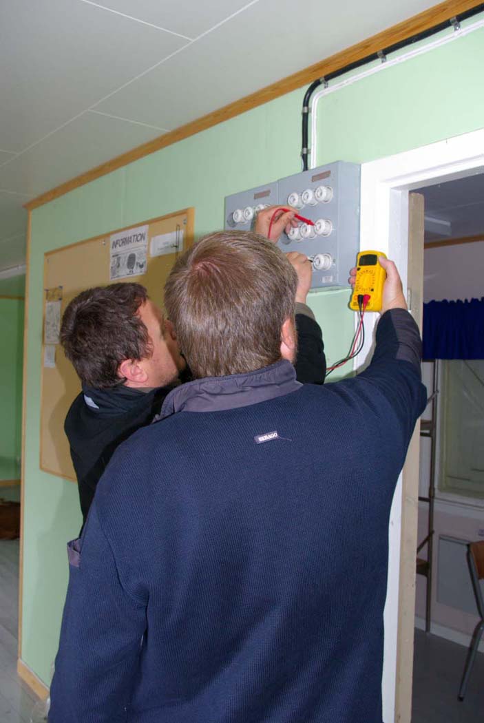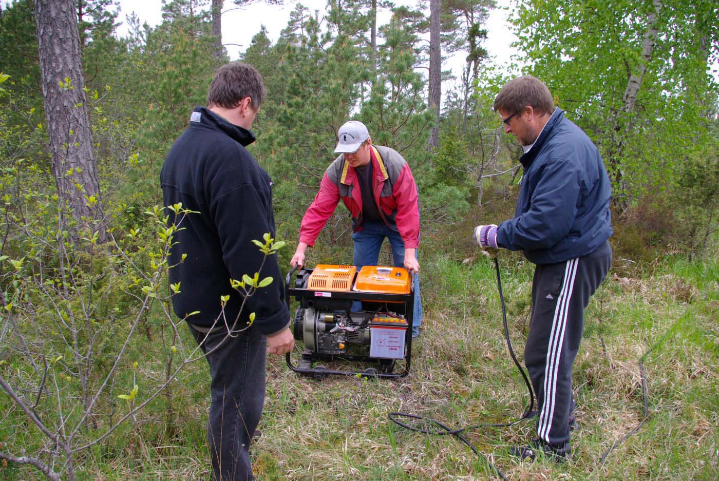 Elverket blev nästa arbetsuppgift. Det var nåt med det elektriska som inte lirade. Men när de väl fått elcentralen omkopplad bars den skramlande manicken ut i skogen för den väsnades bra eländigt. Så mycket att den senare förseddes med stora frigolitskivor runt om.