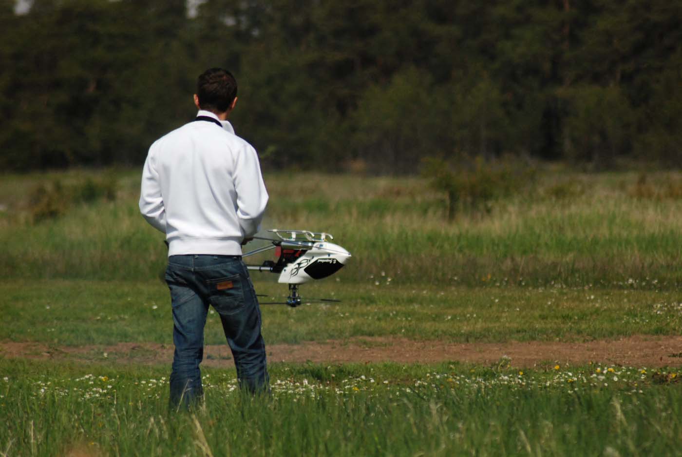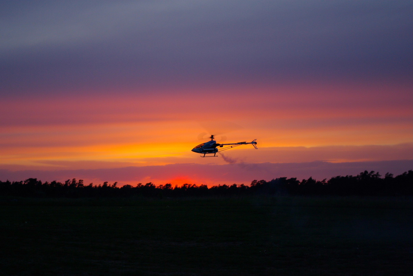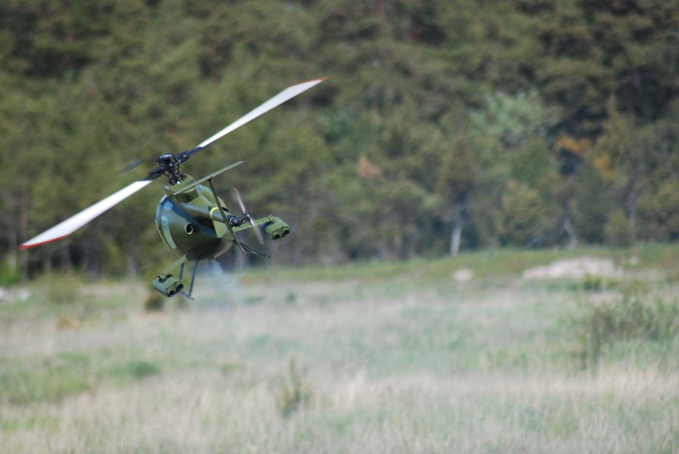 3D-flygarna är i farten viner det om motorn och det smattrar på bra i rotorbladen. Knappt så man uppfattar skillnaden mot en väldämpad metanolare förutom att den vita rökstrimman fattas förstås.