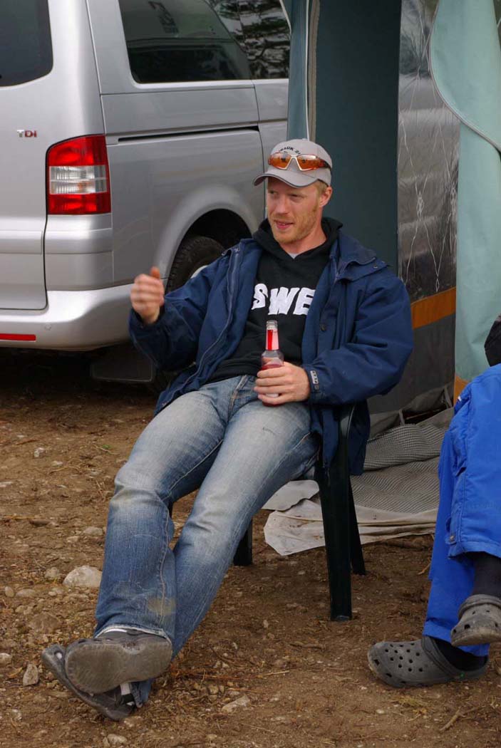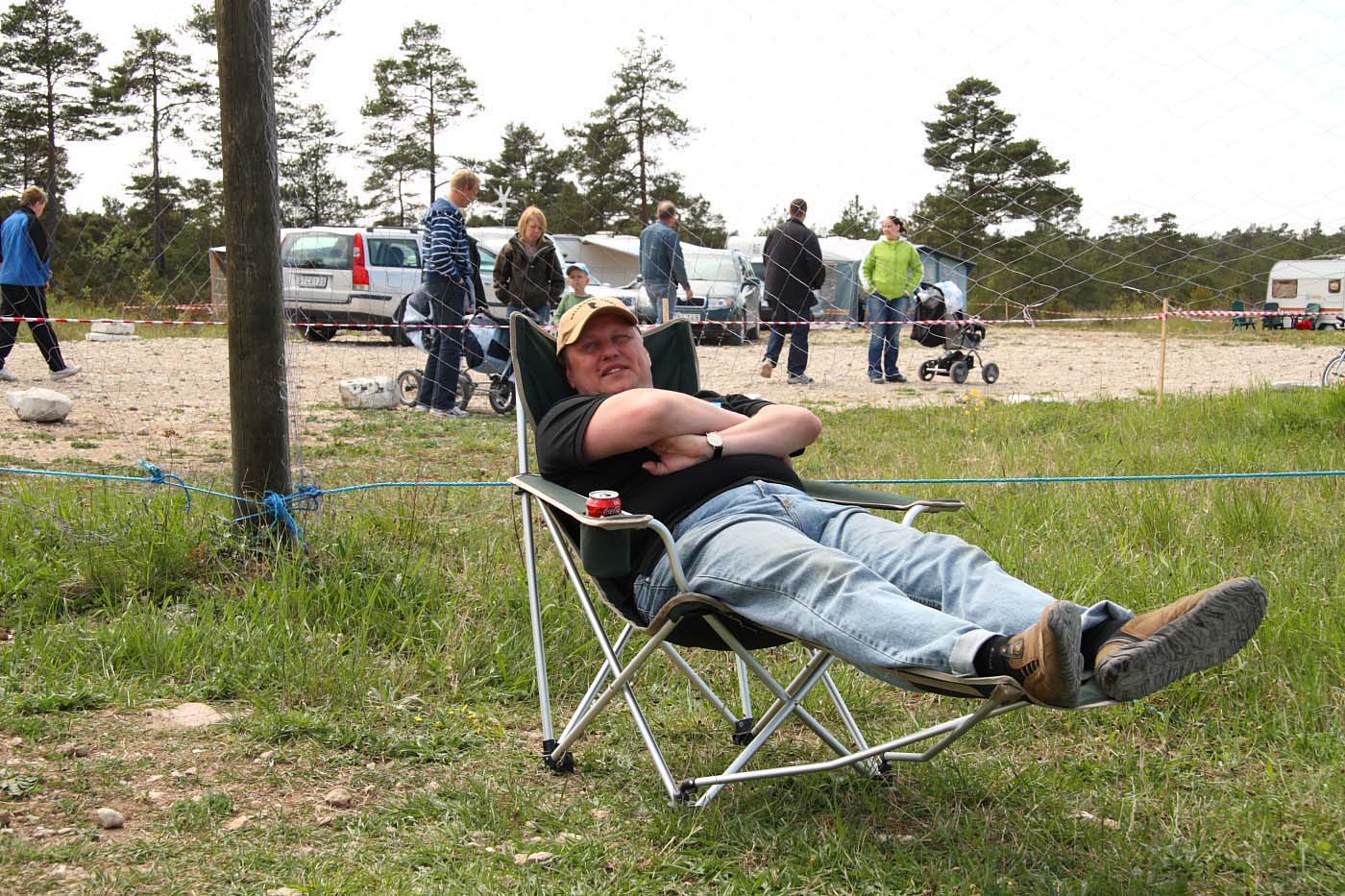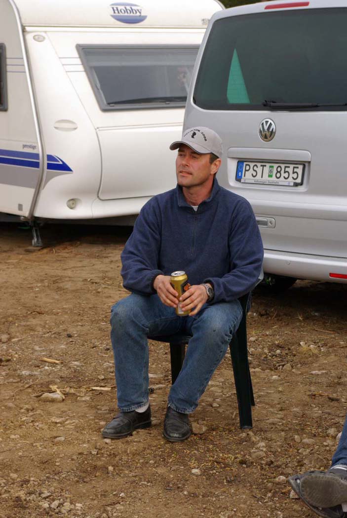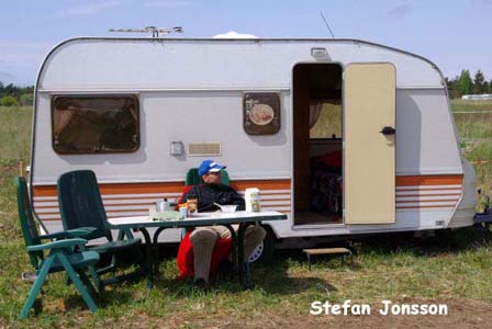 Det är tredje året evenemanget hålls och gotlänningarna tycks ha som sport att jävlas med oss fastlänningar, för de flyttar husvagnscampingen varje gång. Så när man är först på plan och anländer efter midnatt är det bara att dra åt handbromsen nånstans för att reka när det ljusnat. Det är visserligen bra träning att veva stödben ner och upp, men det finns trevligare sysselsättning, så det är lika bra att vänta att koppla loss tills man hamnat på anvisat ställe som sen visade sig mer likna ett grustag än en camping.