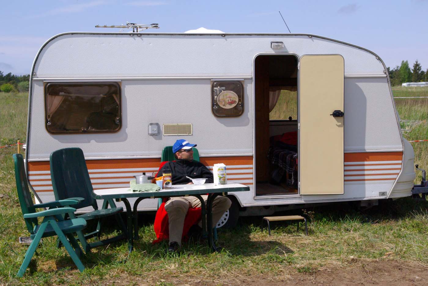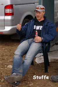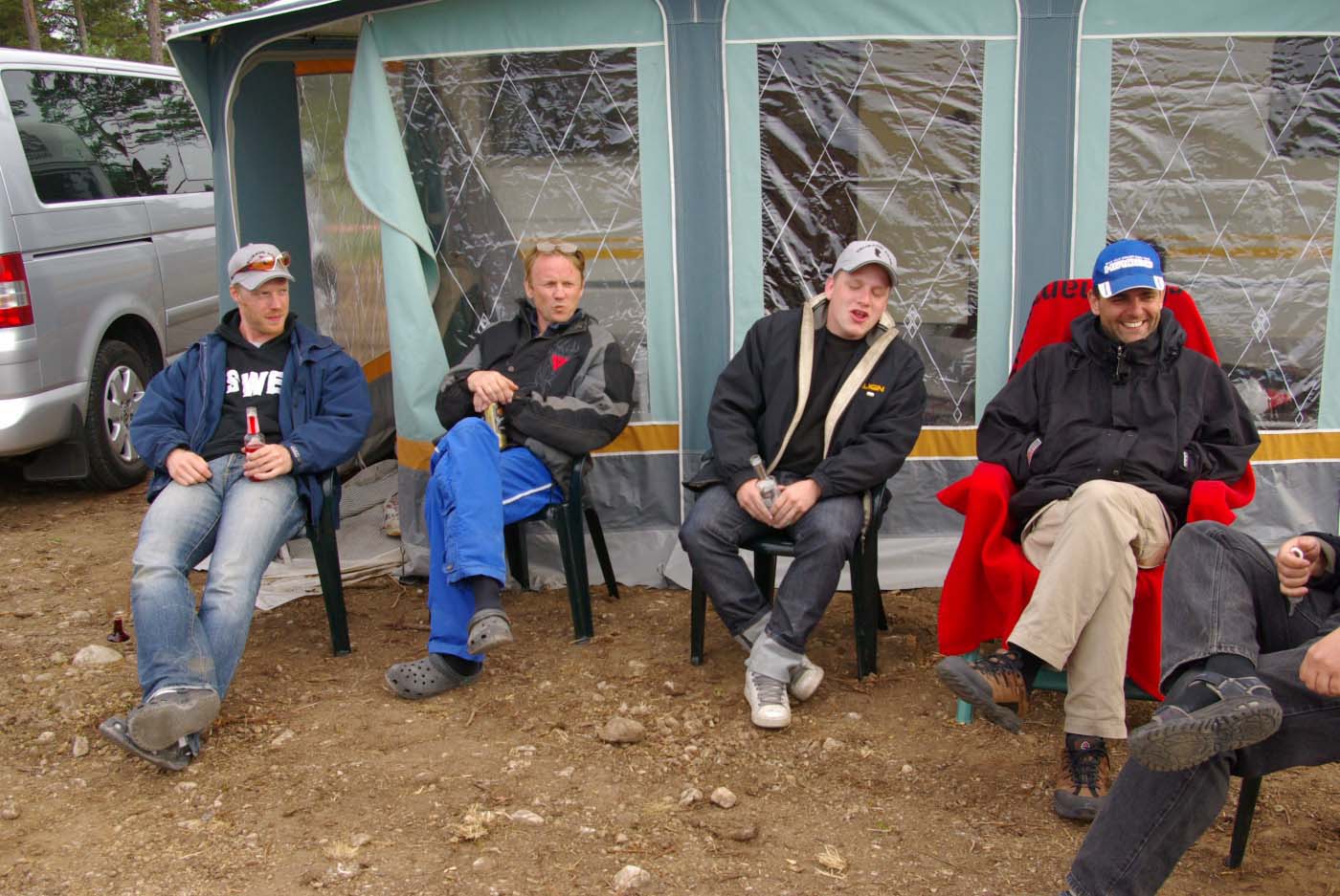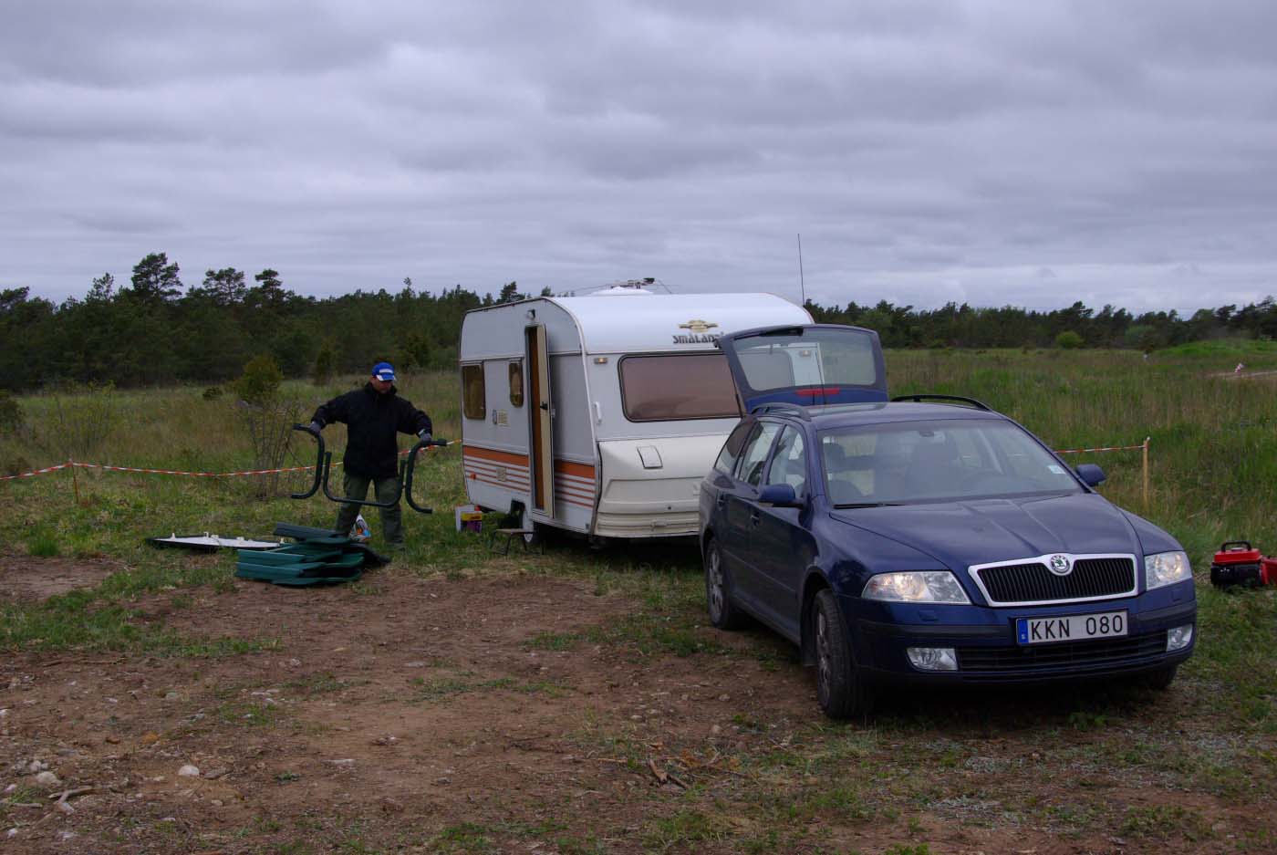 Det är tredje året evenemanget hålls och gotlänningarna tycks ha som sport att jävlas med oss fastlänningar, för de flyttar husvagnscampingen varje gång. Så när man är först på plan och anländer efter midnatt är det bara att dra åt handbromsen nånstans för att reka när det ljusnat. Det är visserligen bra träning att veva stödben ner och upp, men det finns trevligare sysselsättning, så det är lika bra att vänta att koppla loss tills man hamnat på anvisat ställe som sen visade sig mer likna ett grustag än en camping.