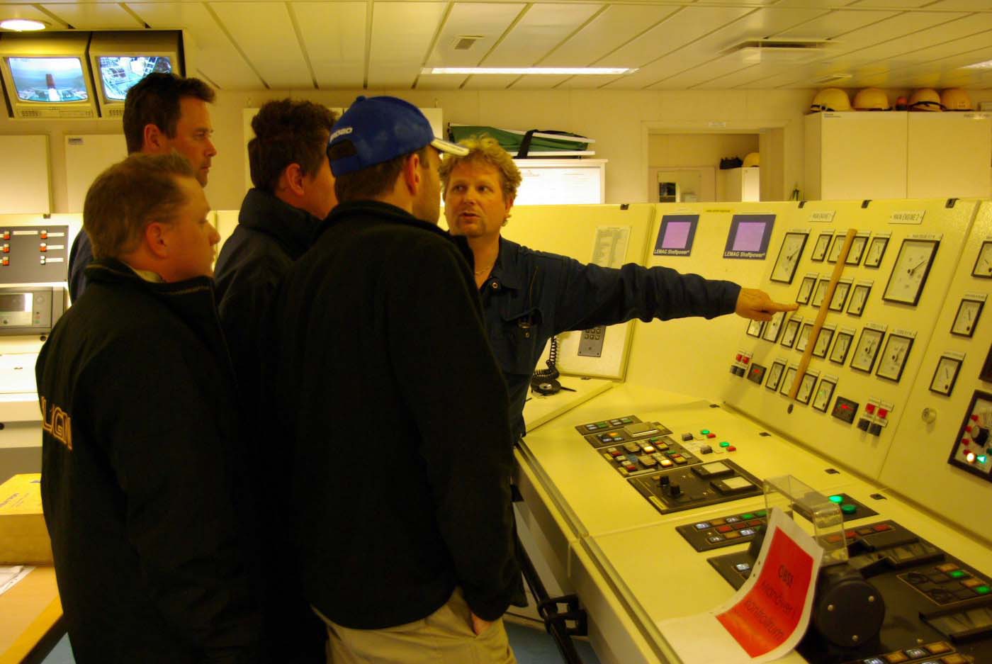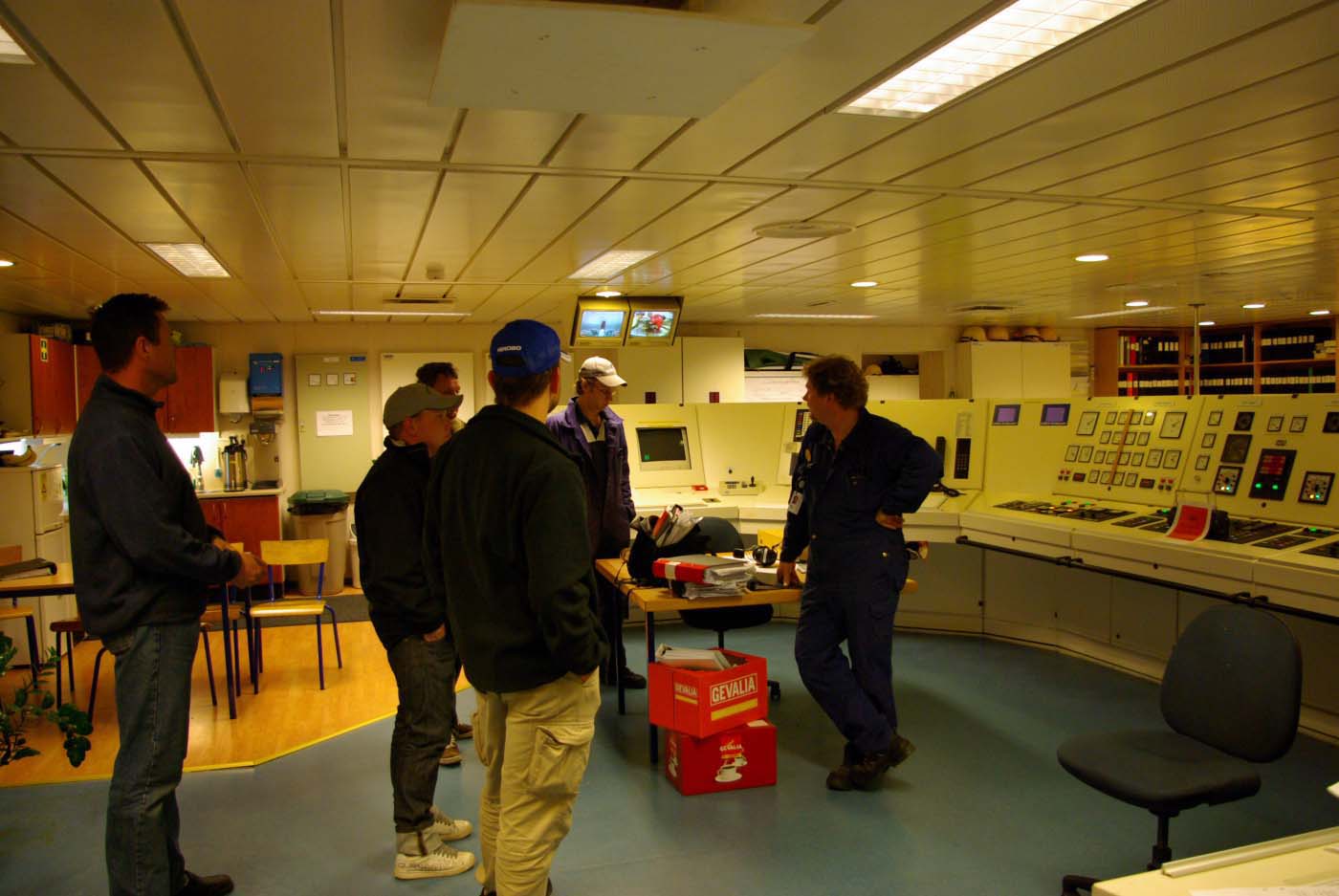 Överfärden var lugn och någon ordnade en inspektion av M/S Gotlands hjärta, dvs. maskin. Vi fick en föreläsning av förstemaskinisten i nånting som såg ut som ett kontrollrum till ett kärnkraftverk modell mindre. Han sa att han var tvungen att berätta vad vi skulle få se eftersom väl på plats gick det näppeligen att göra sig förstådd annat än med gester.
