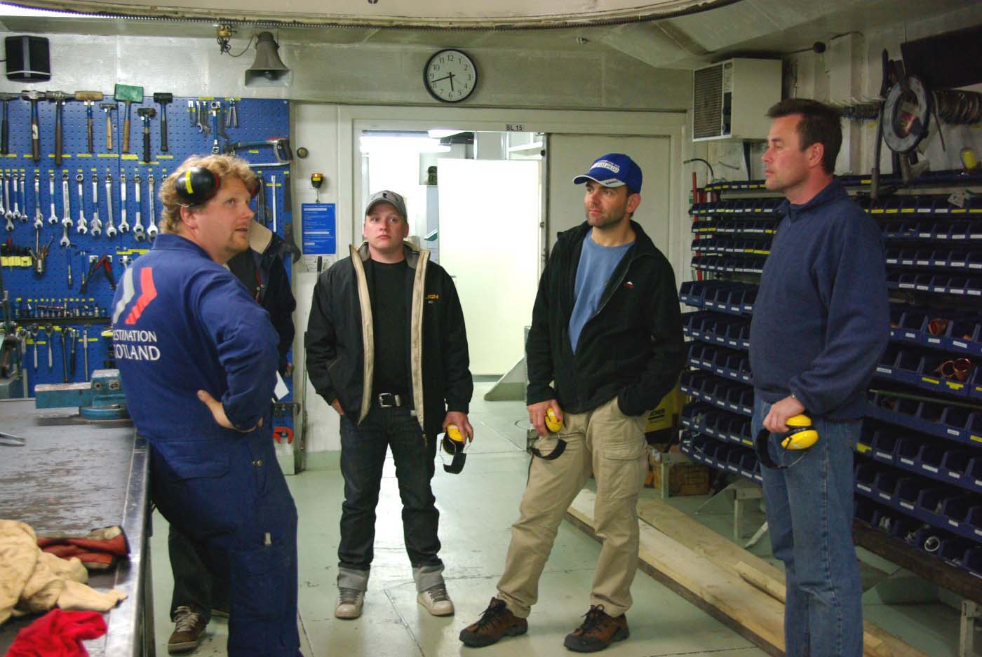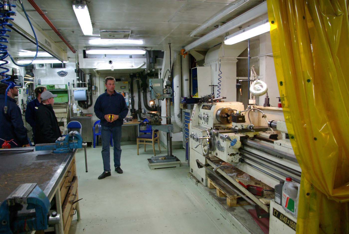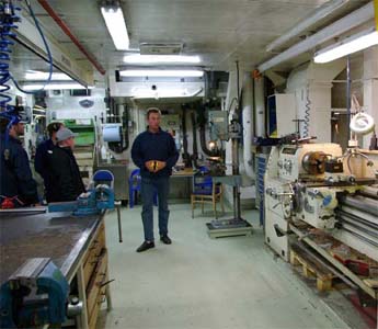 Först kommer man in i underhållsverkstan och en sån skulle man ha hemma. Där fanns allt! Om något händer ute till havs så kan man ju inte gärna handla reservdelar i närmaste butik.