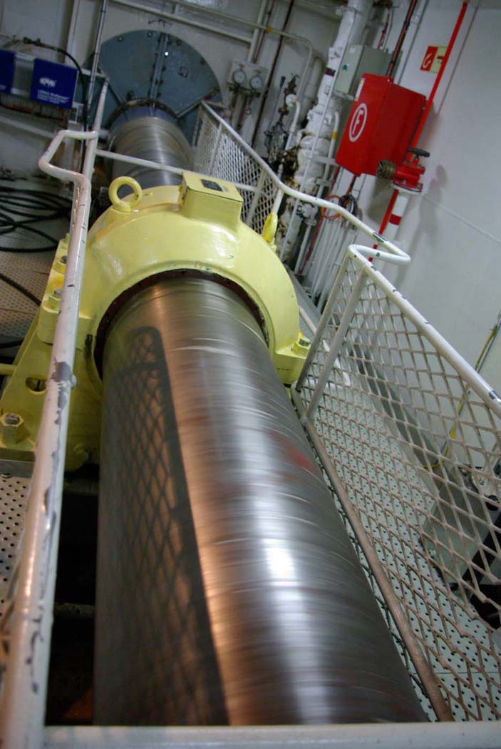 Propelleraxlarna var i alla fall imponerande. De skulle knappt gå att få igenom en vanlig dörrkarm hemma. Inga vanliga pianotrådar precis.