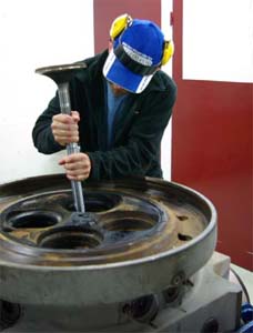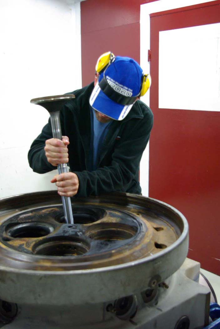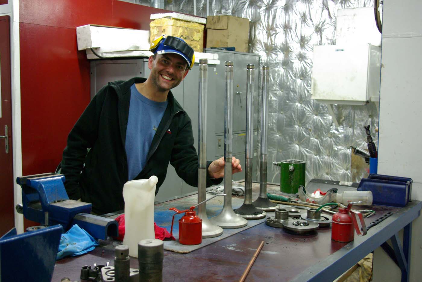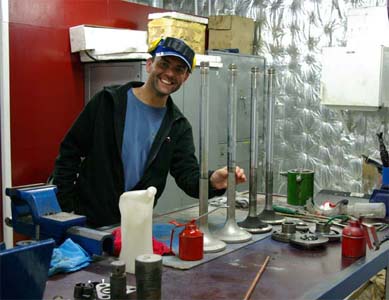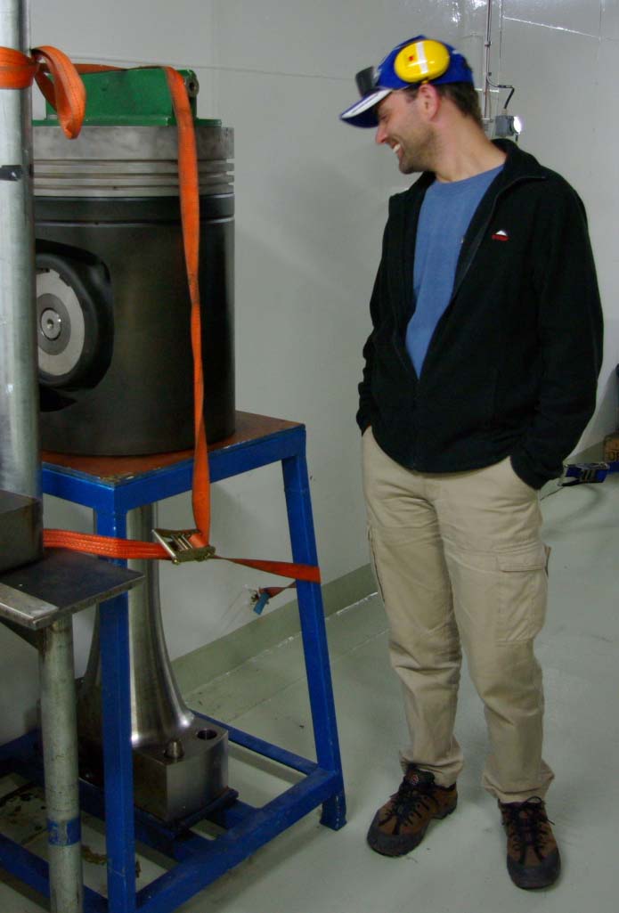 Slutligen kom vi in i motorrenoveringsverkstan och Stefan fick glädjefnatt. Som gammal motormekaniker blev han lyrisk över dimensionerna på delarna till dieslarna.