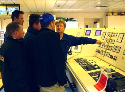 Befälet på bryggan kan ge vilka order och roderutslag de vill, det är ändå maskinbefälet som bestämmer vad som slutligen kommer att ske. I 28 knops fart begränsas roderutslaget till 5 grader. Skulle man ge mer utslag kommer fartyget att välta utåt eftersom det är så mycket vikt ovan vattenlinjen.