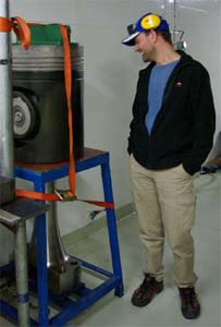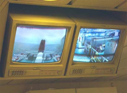 Tryck på knappen och ståldörren glider upp till nästa rum. Ett antal lufttrummor typ gigantiska spirorör kommer ner uppifrån nånstans och in i stora fläktar eller vad det kan vara. Medan man står där och funderar inser man att man står mellan två motorer. Och nu pratar vi om storleken på en buss ungefär. Man var tvungen att gå upp en våning för att förstå hur stora de är.