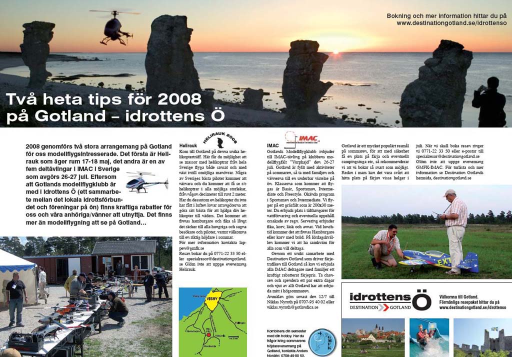 Hur det än blir med det kan jag varmt rekommendera Heliraukträffen för intresserade heliflygare. Ön är ju inte enbart intressant för modellflygare. Det finns att göra för hela familjen. Resekostnaden är överkomlig då träffen går under Idrottsresor vilket innebär kraftig rabatt på överfarten. Bil+husvagn+sittplats för 2 personer gick på ungefär 1800 kr tur och retur.