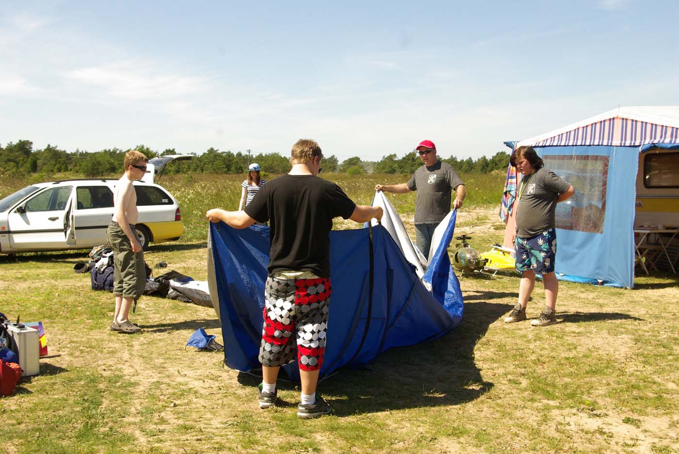 Blåsten gjorde väl sitt till att det inte behövdes köbricka för att få ett flygpass. Men humöret var på topp och solen stekte. Trots hårda vindar var det endast Micke Pettersson, alias MP_Swede, som synade Moder Jord. Fast det får tas på övermodets konto. Men om man inte testar sina gränser kommer man heller inte vidare, så han tog det med jämnmod. Man kan inte lyckas varje gång. Och helikoptrar är tämligen enkla att reparera. Ersätt det som är krokigt och spräckt och man är i luften igen.