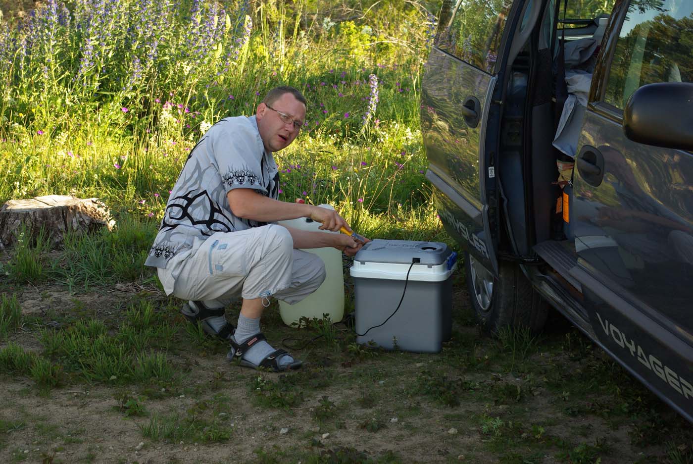 Själva tidpunkten var flyttad till sista helgen i juni och inte som tidigare under Kristi Himmelsfärdshelgen. Det var en lyckträff. Efter att vi tidigare bitvis frusit som hundar var det nu tvärtom. Varmt så det förslog. Men samma envisa vind. Märkligt nog från nordost vilket är ovanligt på Vurpen. Men det stillnar mot kvällen och så här års flygs det halvvägs in på natten och kan kan få se märkliga fenomen på himlen. Moln som lyser på undersidan.
